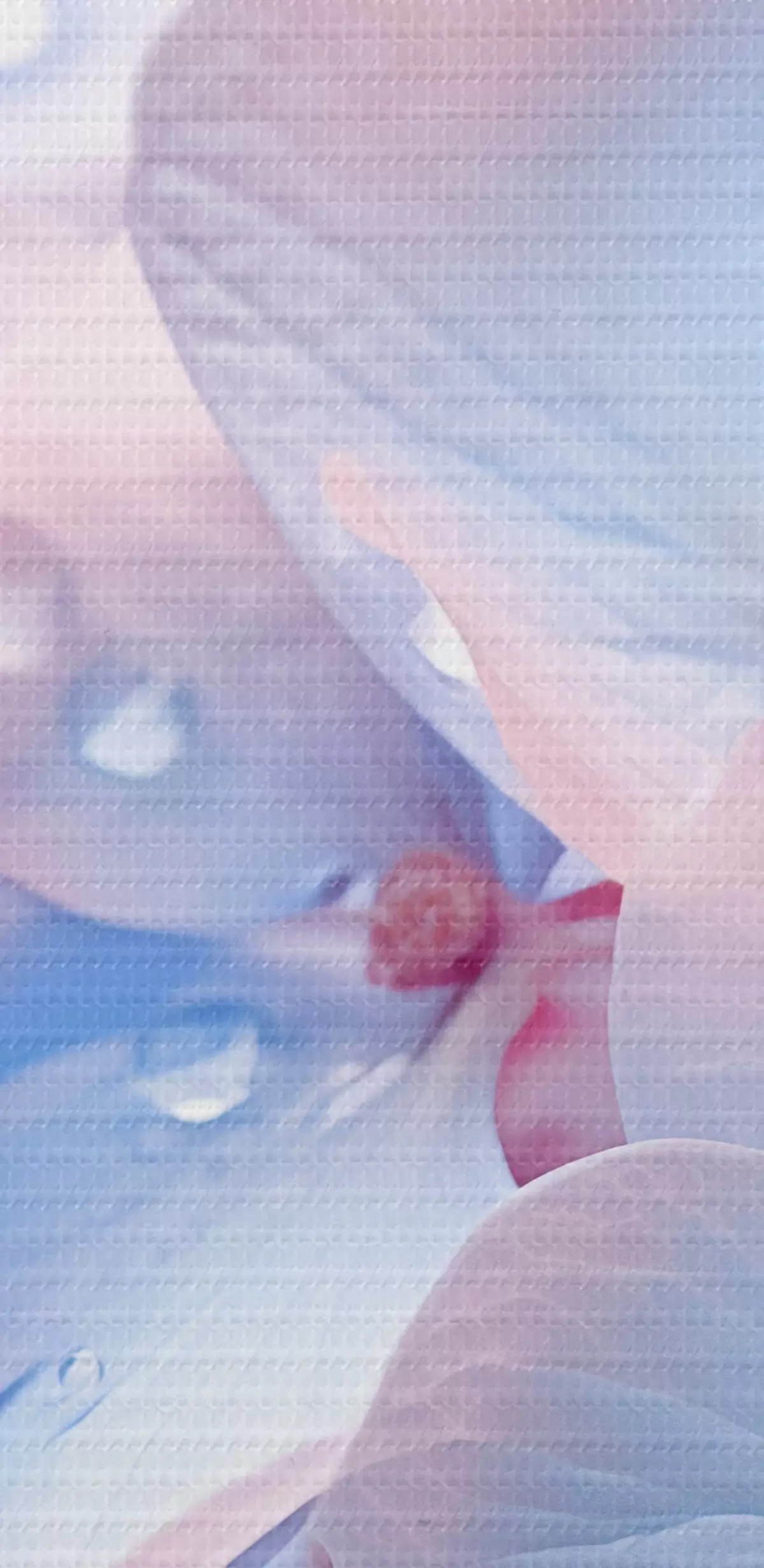 Tableaux rondes Fleurs d'hortensia avec des gouttes d'eau sur les pétales délicats, couleurs pastel douces, tons bleu clair et rose r44929