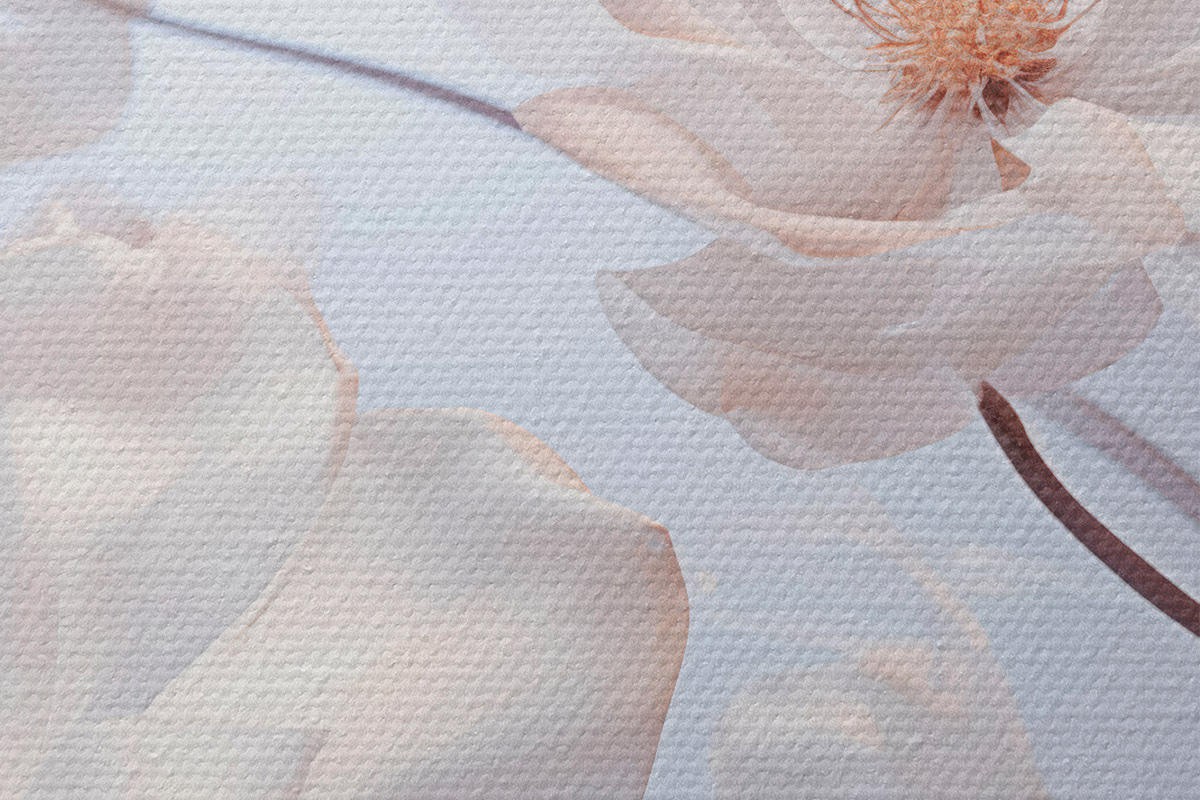 Trois types de matériaux peuvent être commandés : Economic Canvas - matériau dense et durable pour l'impression numérique, identique à la toile de peintre, surface imperméable, reproduction réaliste des détails, matériau à grain moyen. Premium Canvas - la texture ressemble à celle d'une toile de peintre (petits fils entrelacés). Reproduction douce et détaillée de l'image sur une surface mate. Eco-Premium - tissu 100 % coton de haute qualité. Grâce aux fibres naturelles de coton, le matériau est durable et résistant à l'usure. Excellente reproduction des couleurs et des détails.