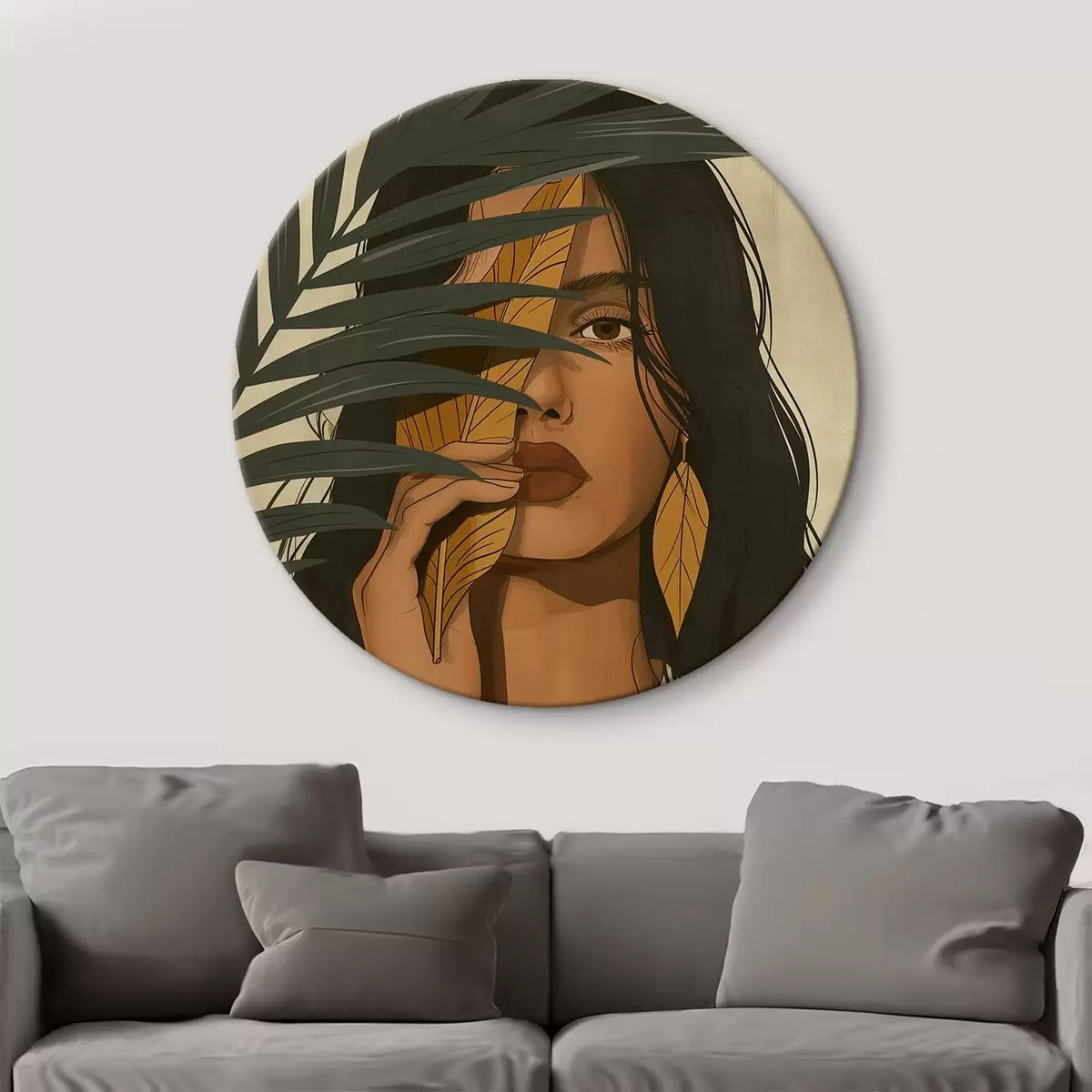 Tableaux rondes Visage caché derrière les feuilles Nr r44960