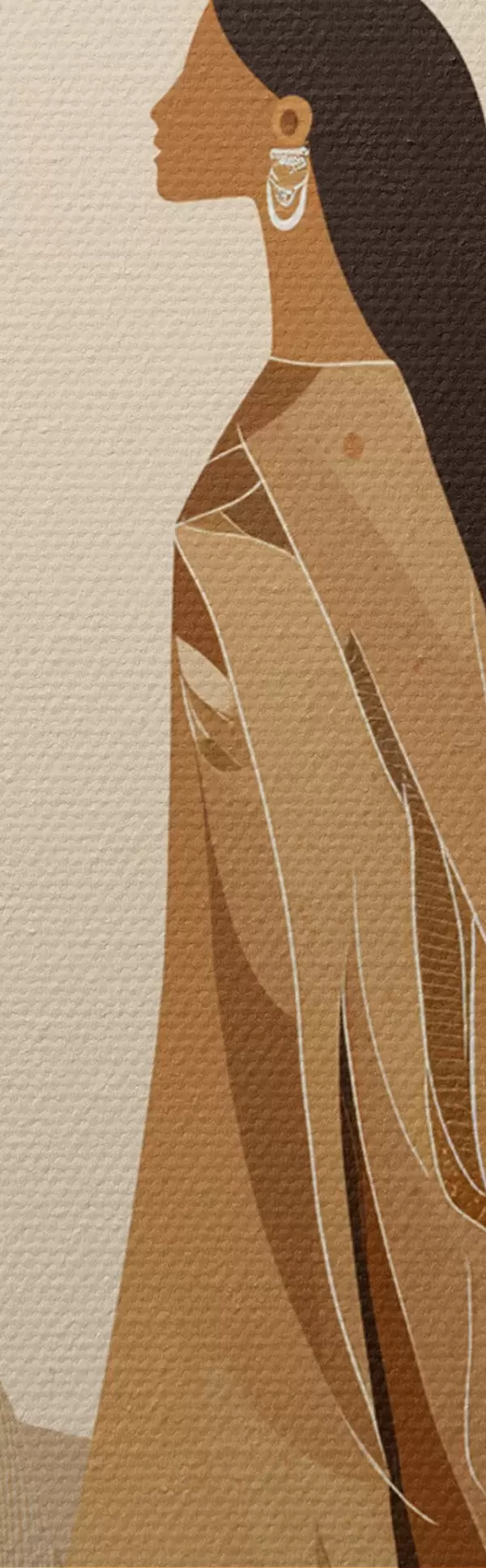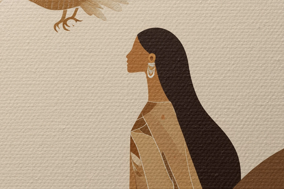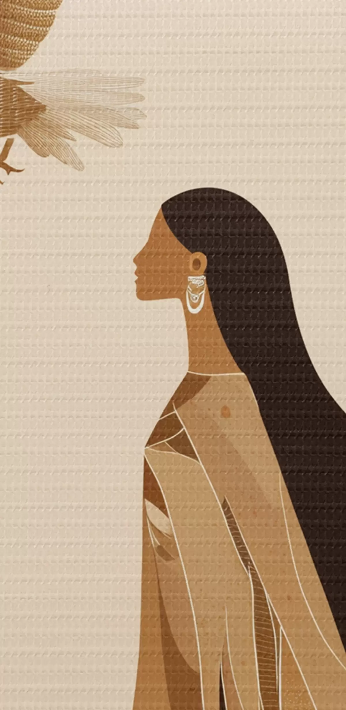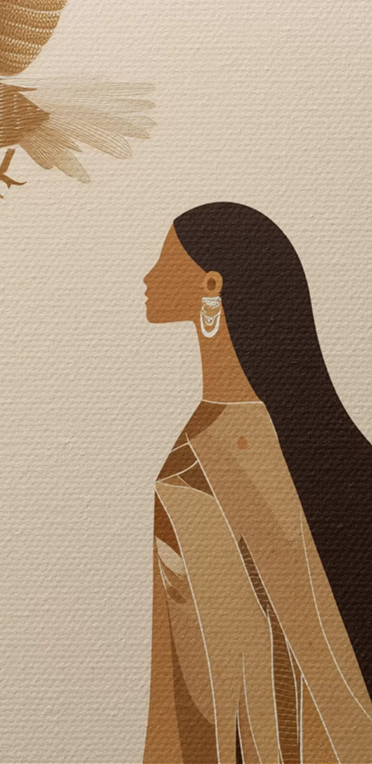Tableaux rondes Abstraction avec femme et aigle dans le ciel, couleurs beiges r44978