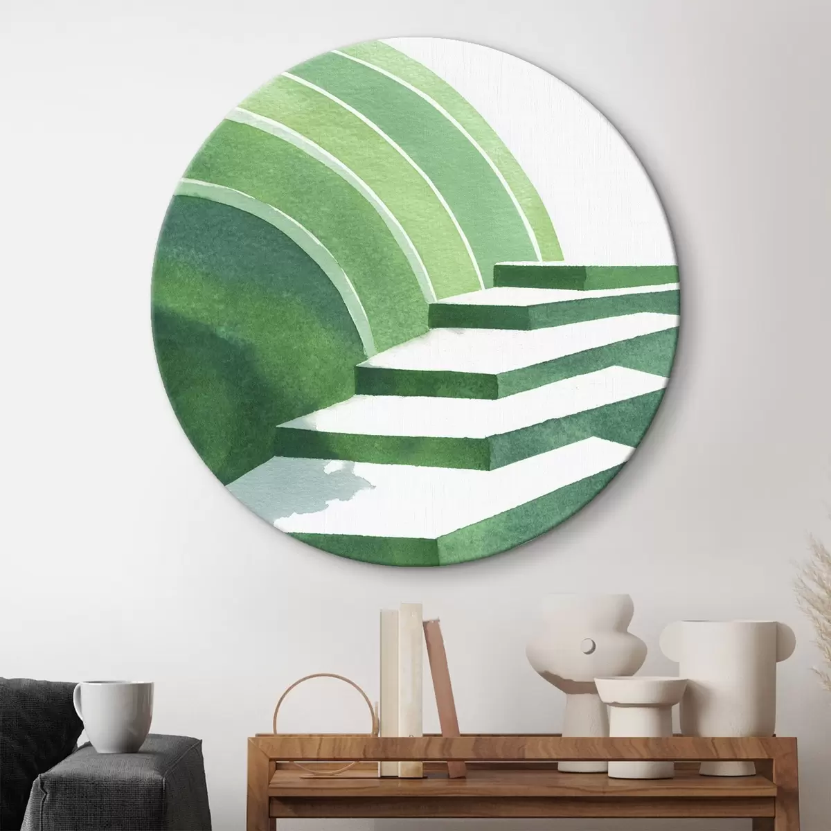 Tableaux rondes Abstraction géométrique dans des couleurs vertes, style aquarelle Nr r44981