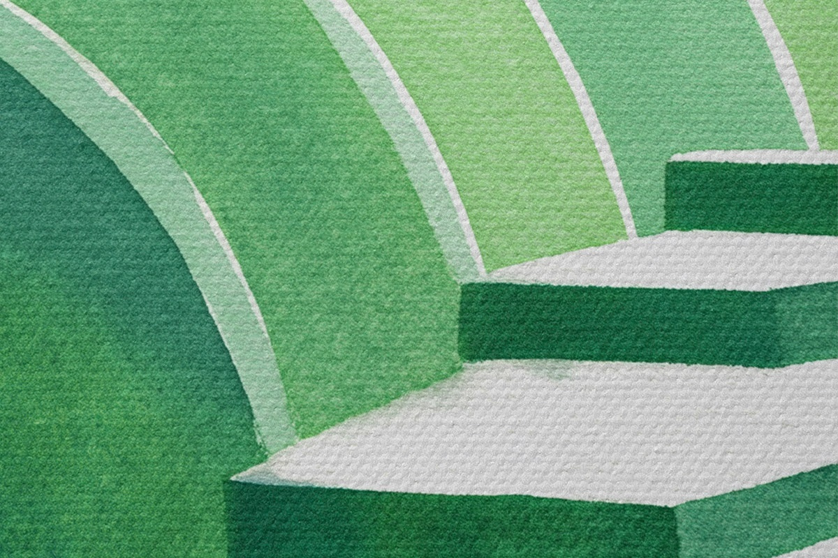 Tableaux rondes Abstraction géométrique dans des couleurs vertes, style aquarelle r44981