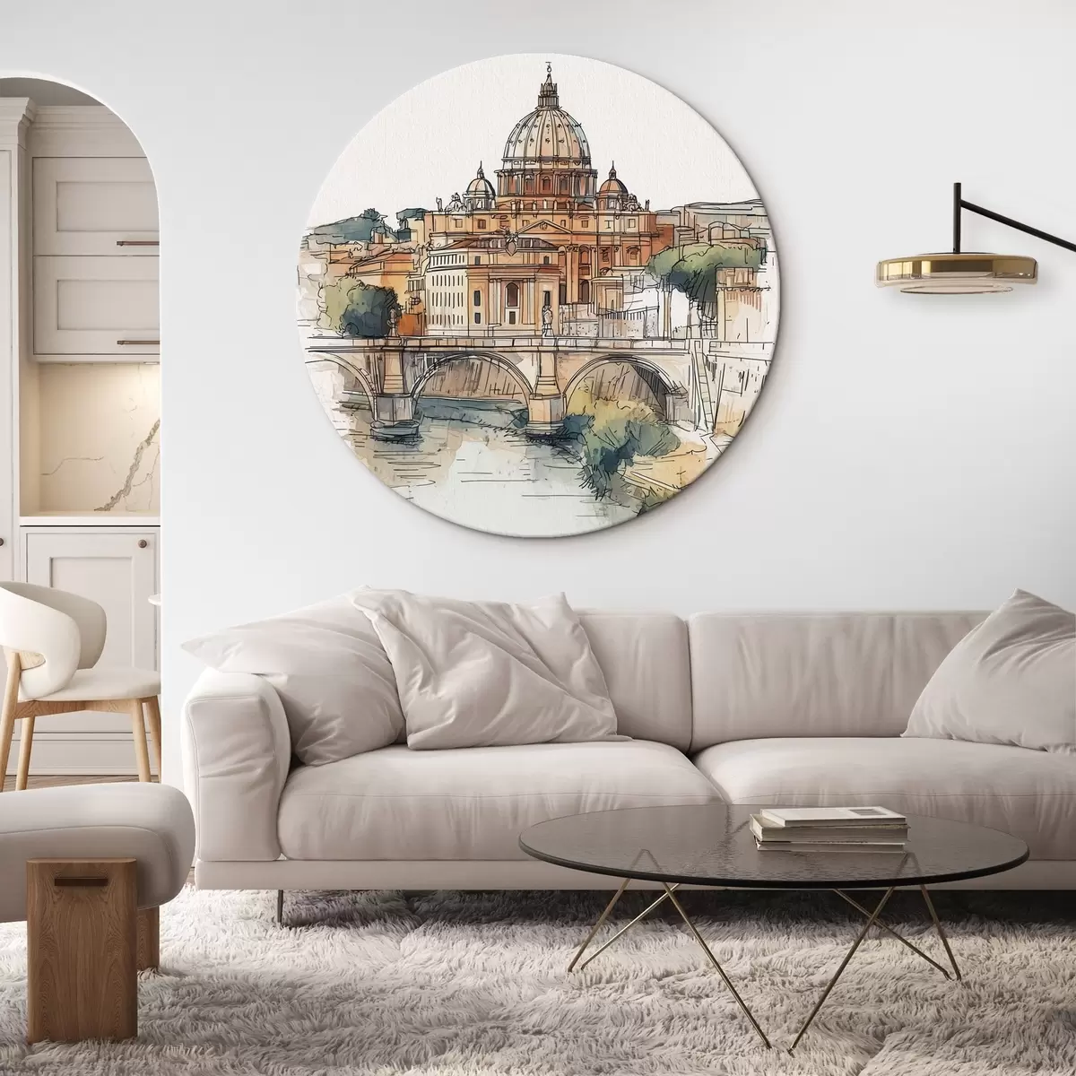 Tableaux rondes Aquarelle Rome, ville, dessin, architecture r44983