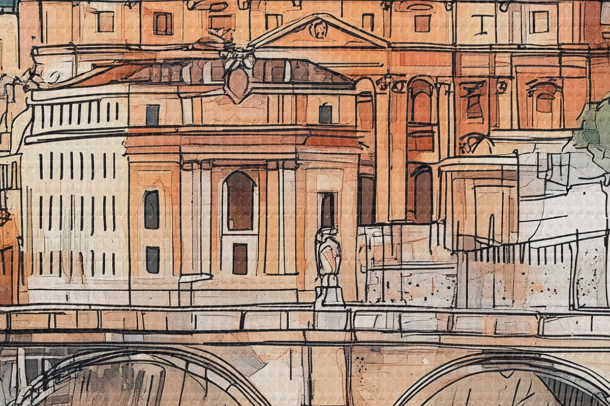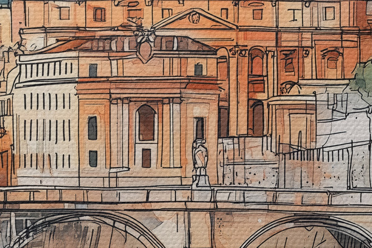 Tableaux rondes Aquarelle Rome, ville, dessin, architecture Nr r44983