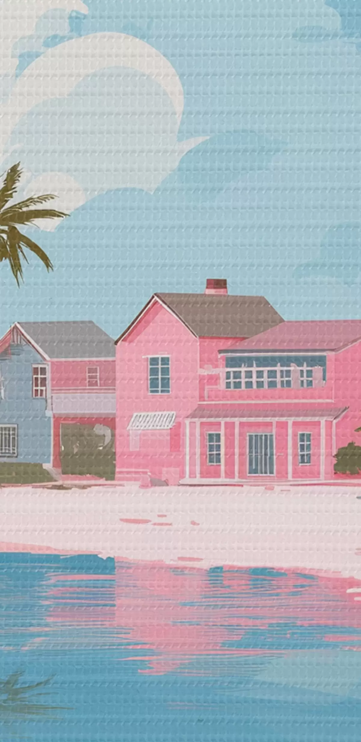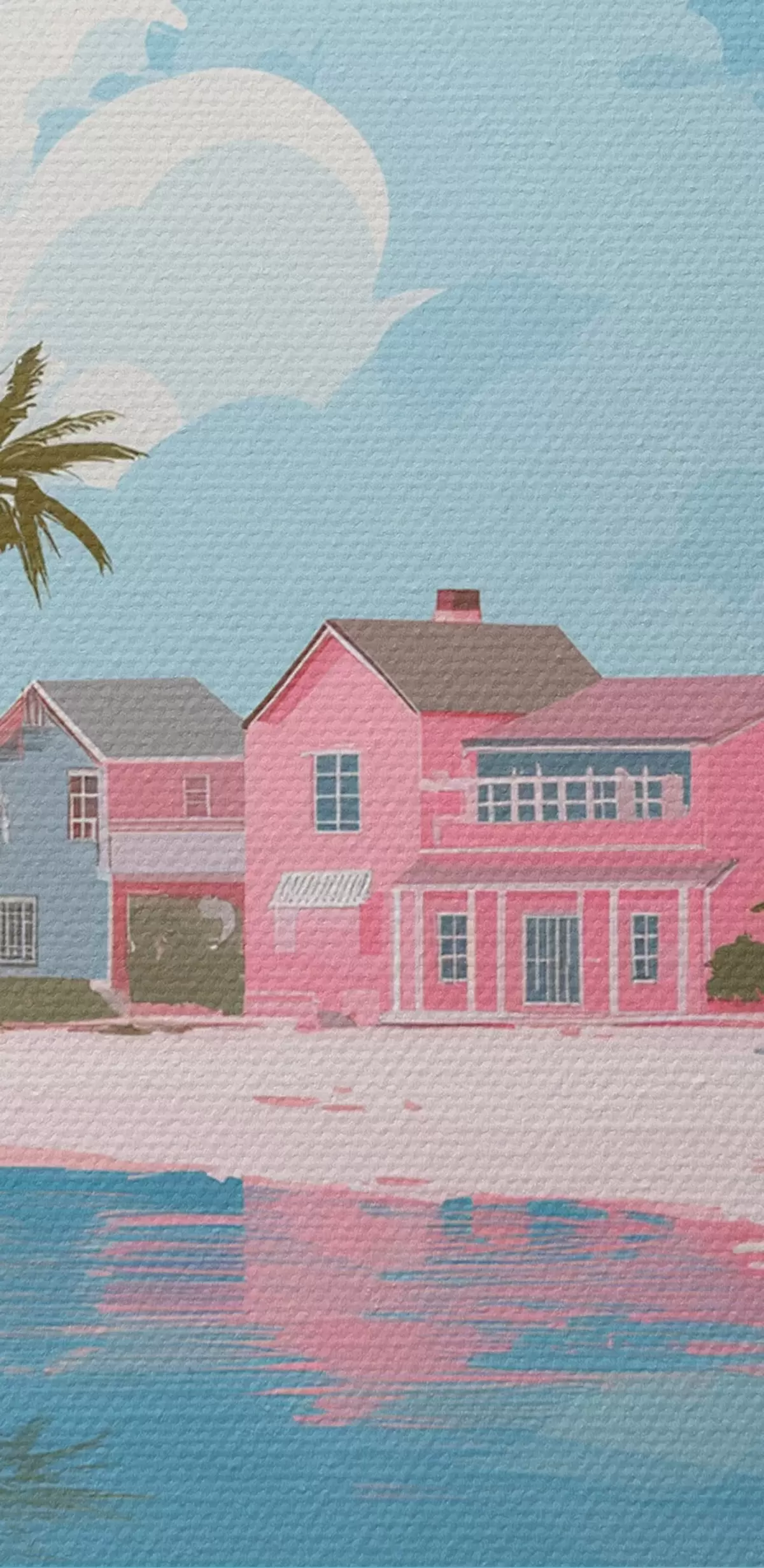 Tableaux rondes Plage d'été rose et colorée Nr r44985