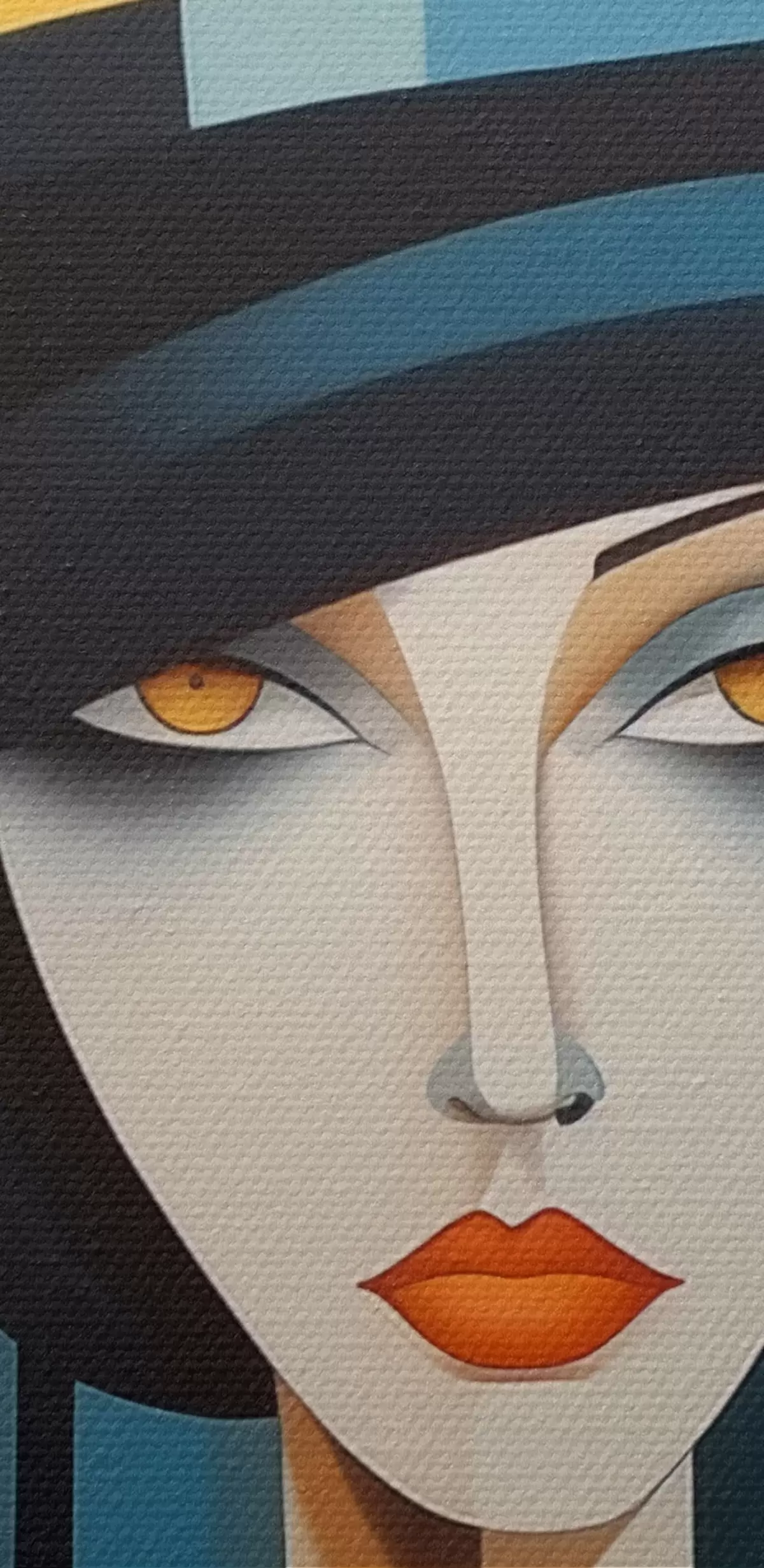 Tableaux rondes Portrait abstrait d'une femme avec un chapeau Nr r44990