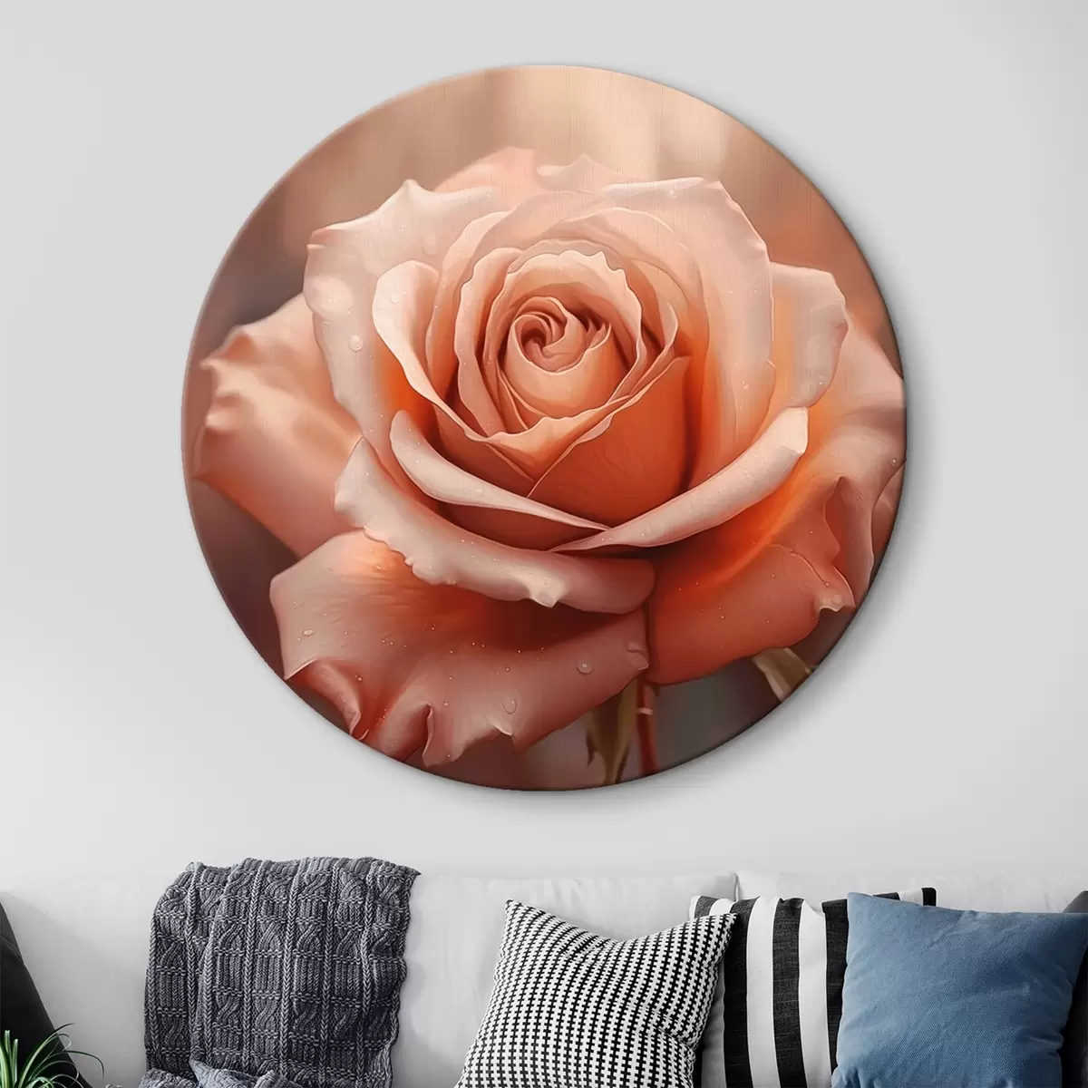 Tableaux rondes Rose avec gouttes de rosée r44991
