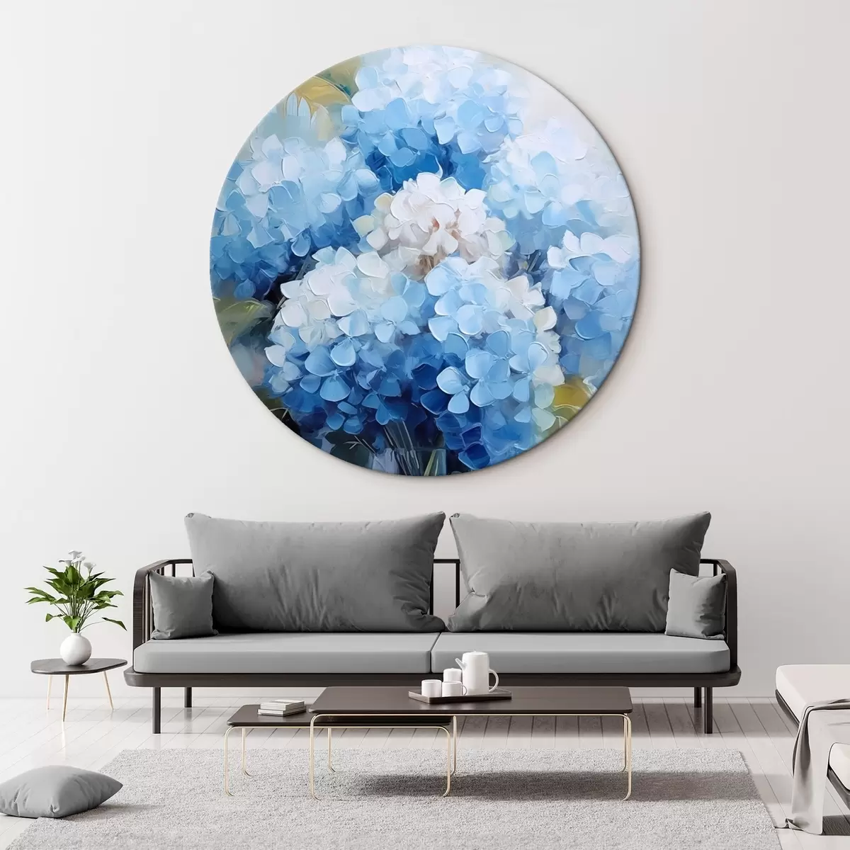 Tableaux rondes Bouquet d'hortensias bleus dans un vase en verre Nr r44998
