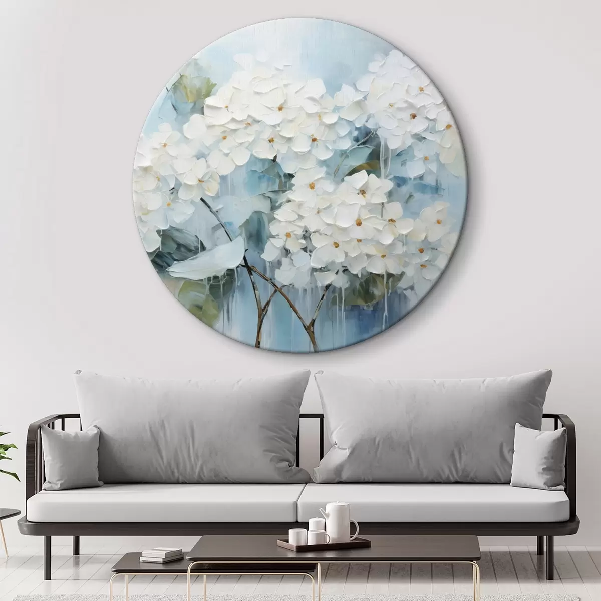 Tableaux rondes Hortensias blancs en fleurs dans le style de la peinture à l'huile r45051