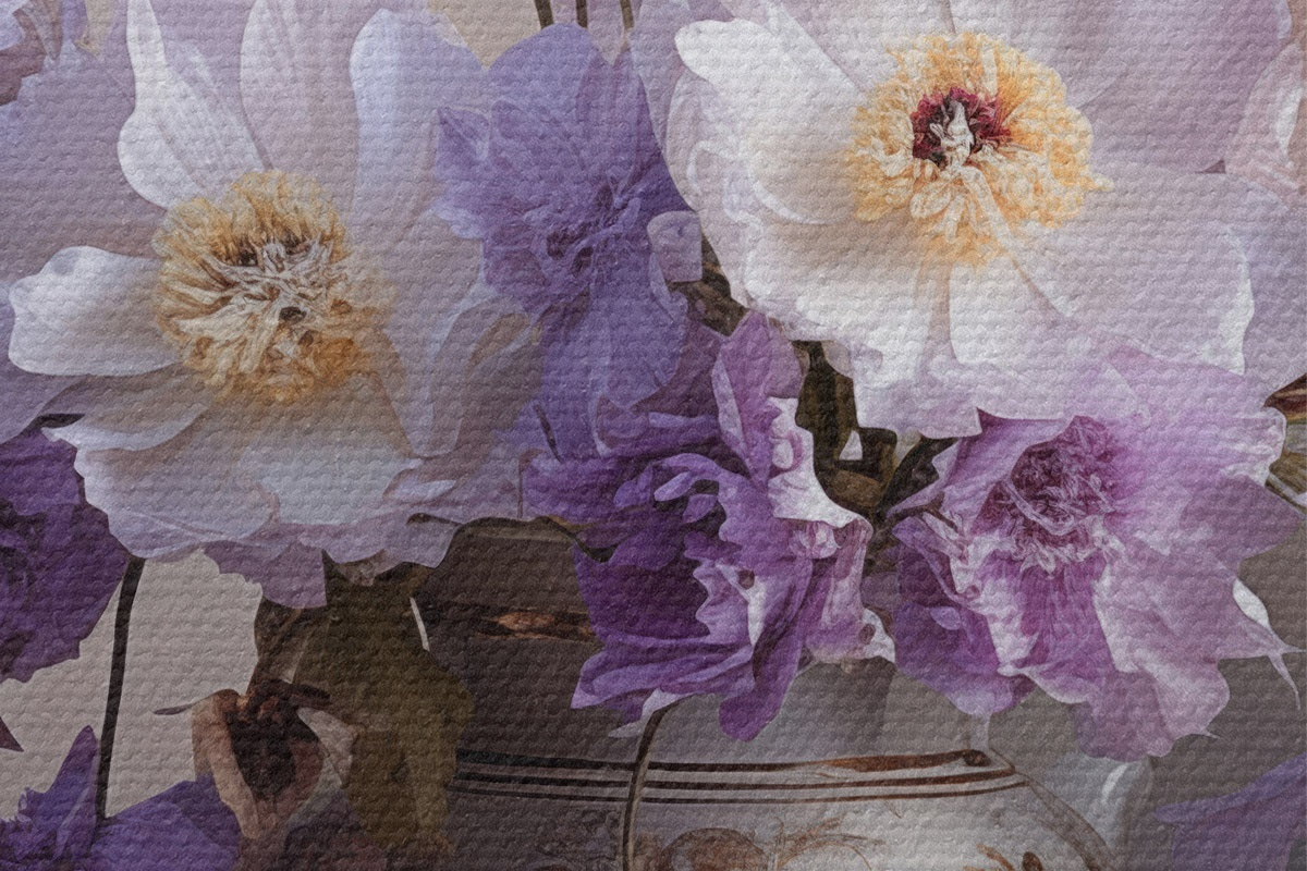 Tableaux rondes Nature morte florale : fleurs blanches et violettes dans un style artistique r45058