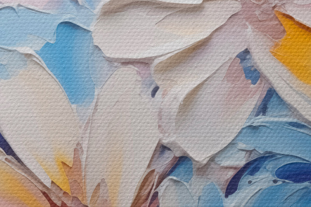 Trois types de matériaux peuvent être commandés : Economic Canvas - matériau dense et durable pour l'impression numérique, identique à la toile de peintre, surface imperméable, reproduction réaliste des détails, matériau à grain moyen. Premium Canvas - la texture ressemble à celle d'une toile de peintre (petits fils entrelacés). Reproduction douce et détaillée de l'image sur une surface mate. Eco-Premium - tissu 100 % coton de haute qualité. Grâce aux fibres naturelles de coton, le matériau est durable et résistant à l'usure. Excellente reproduction des couleurs et des détails.