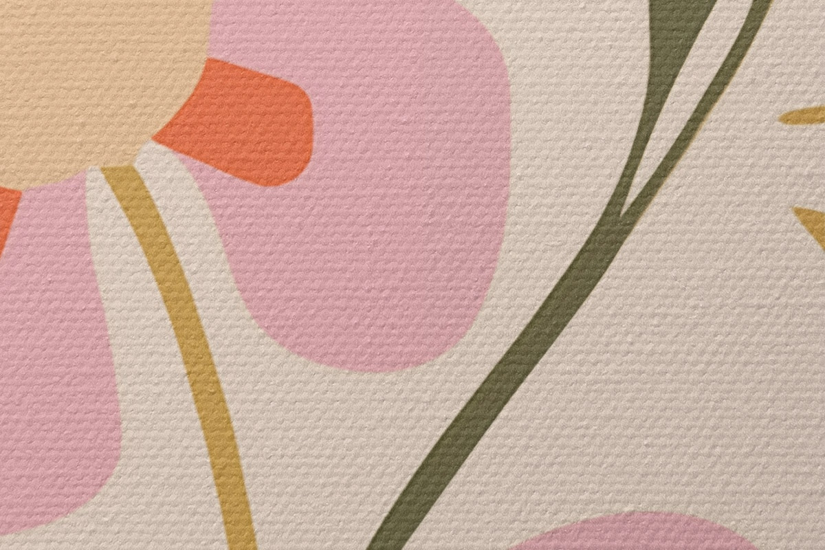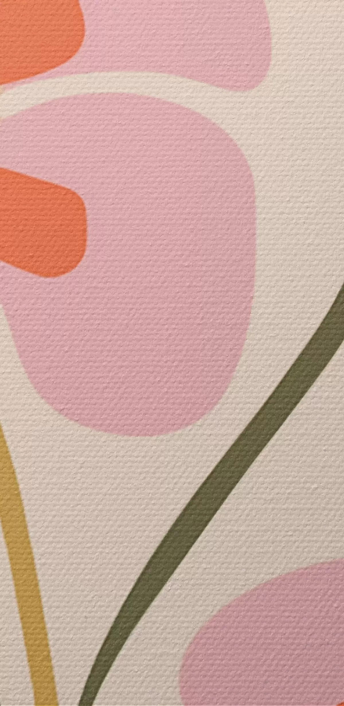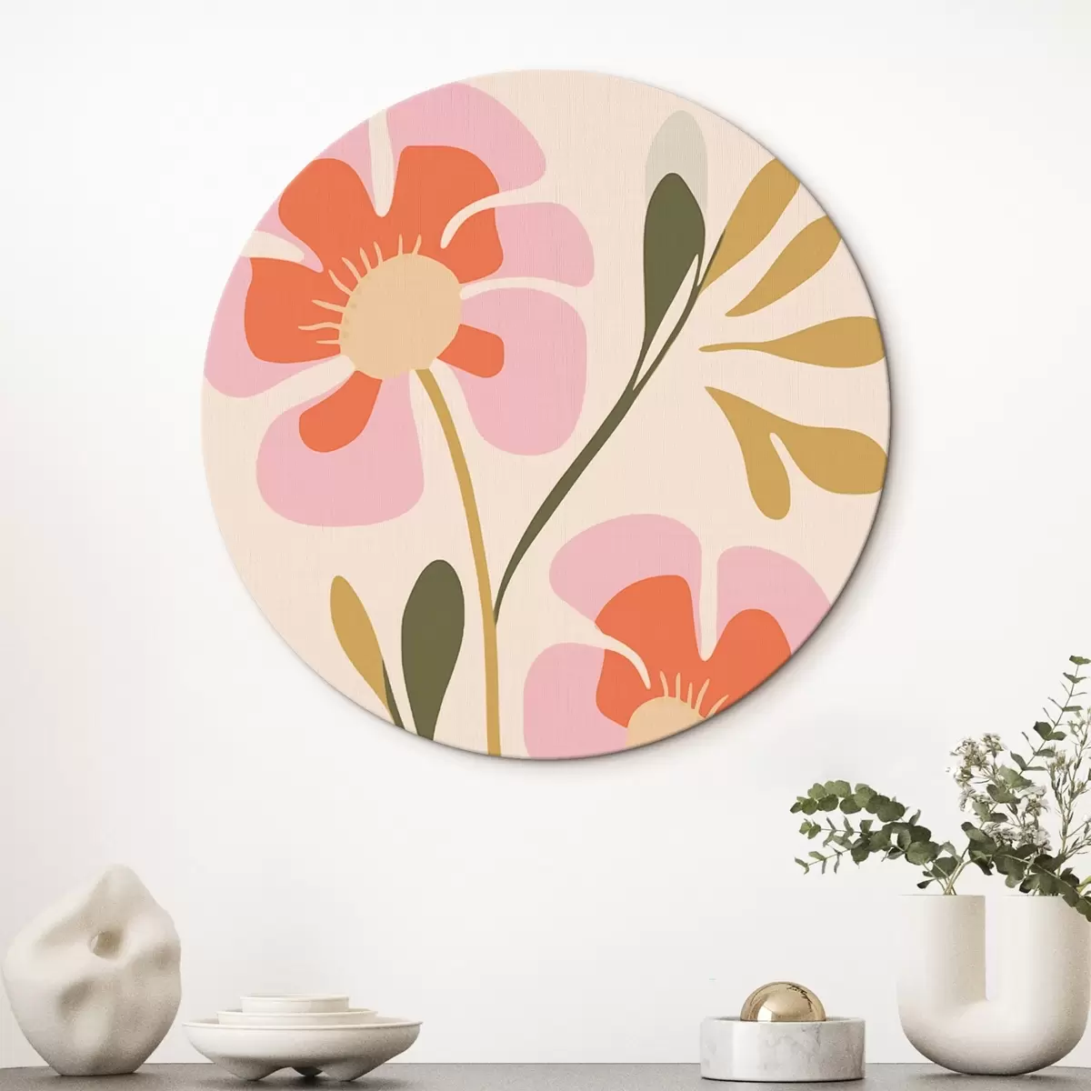 Tableaux rondes Fleurs stylisées roses et orange avec des feuilles vertes r45140