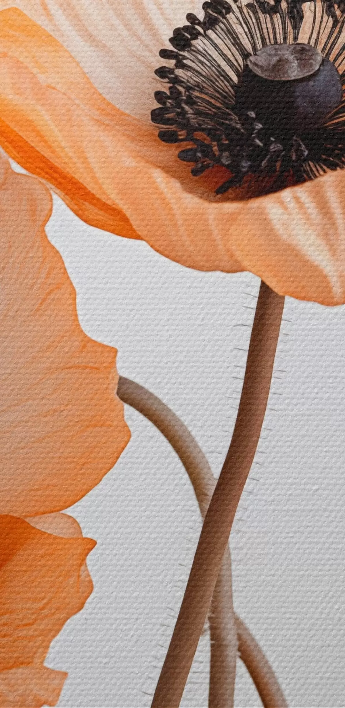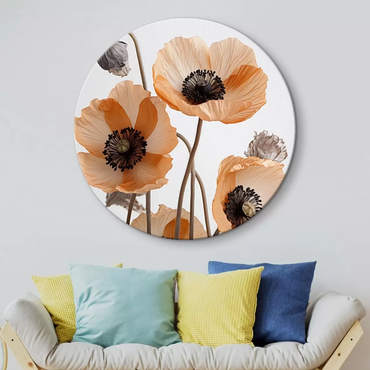 Tableaux rondes Coquelicots orange, fleurs séchées sur fond clair, éclairage doux, pétales délicats, arrangement floral Nr r45167