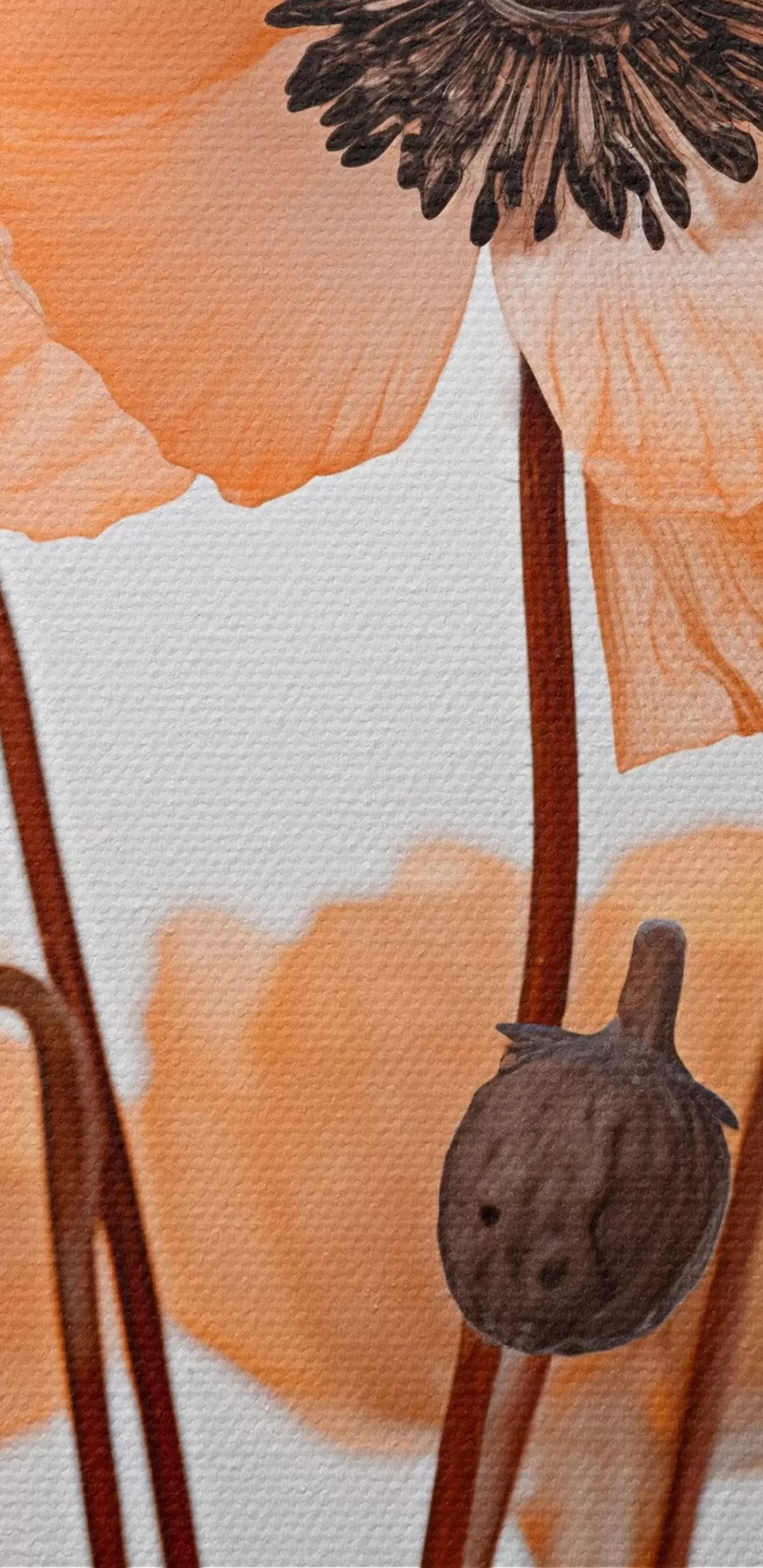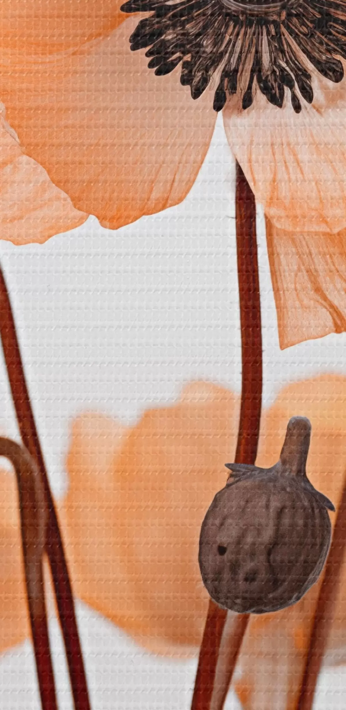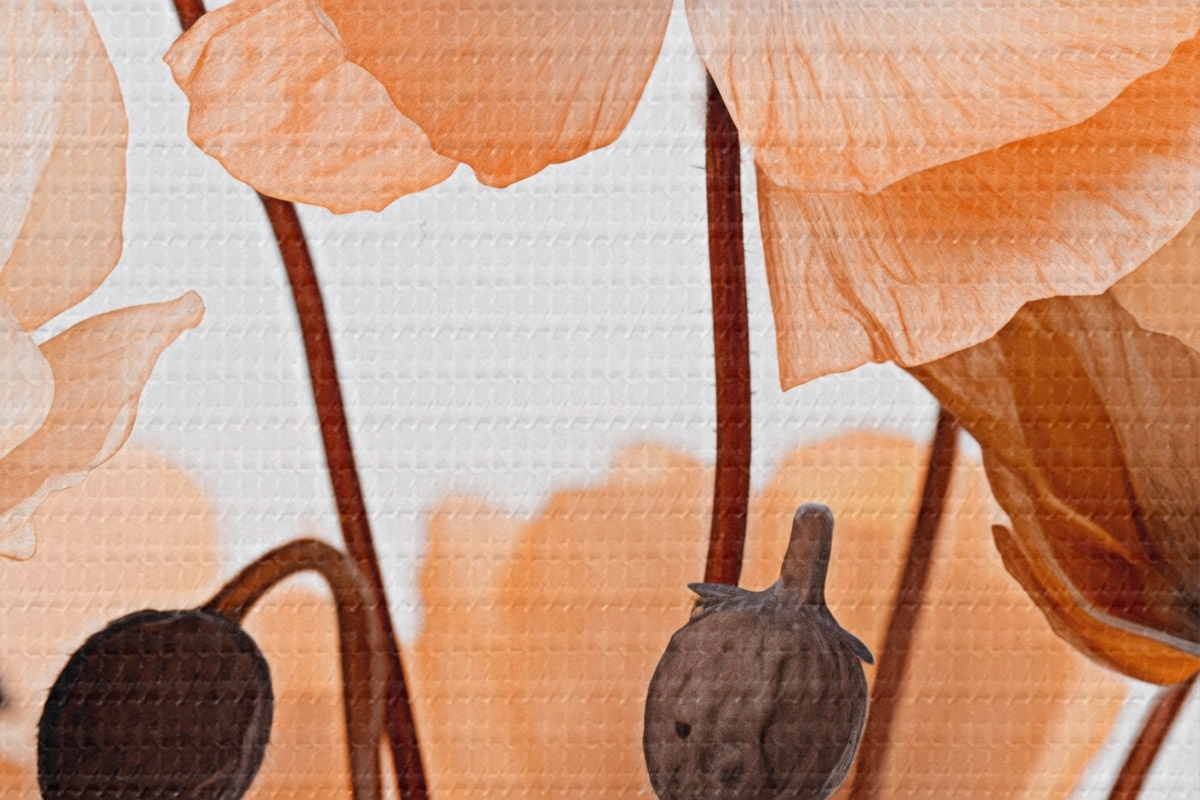 Tableaux rondes Coquelicots orange, fleurs séchées sur fond clair, éclairage doux, pétales délicats, arrangement floral r45168