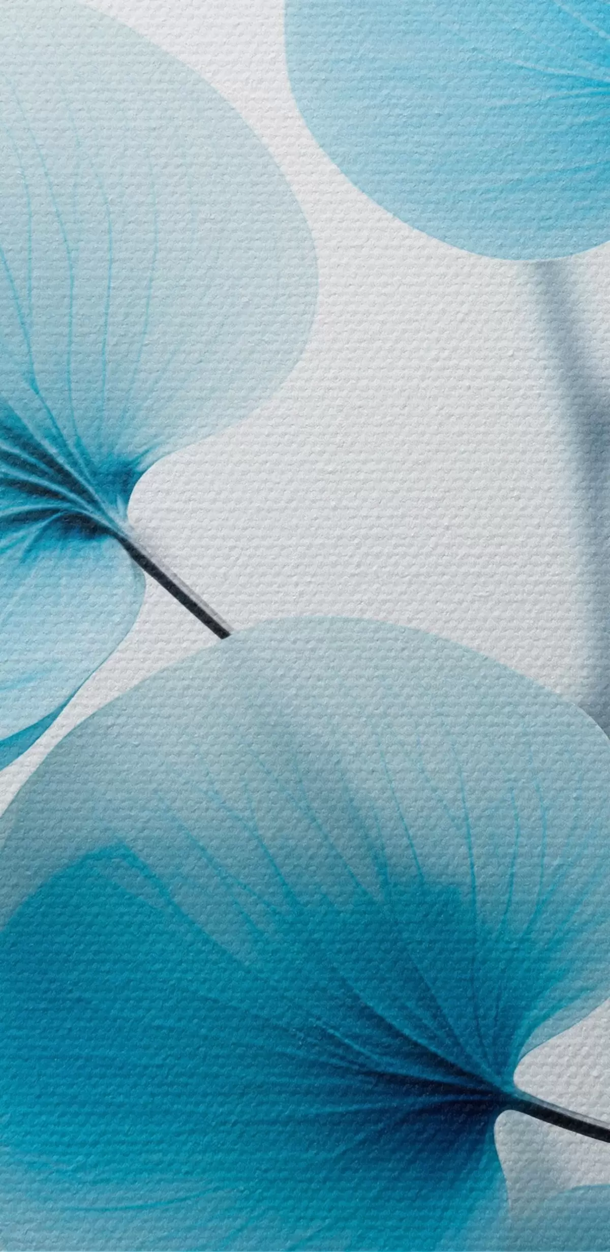 Tableaux rondes Branche avec des feuilles bleues translucides, veines délicates visibles, composition légère et calme, esthétique minimaliste Nr r45176