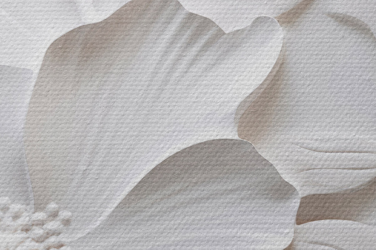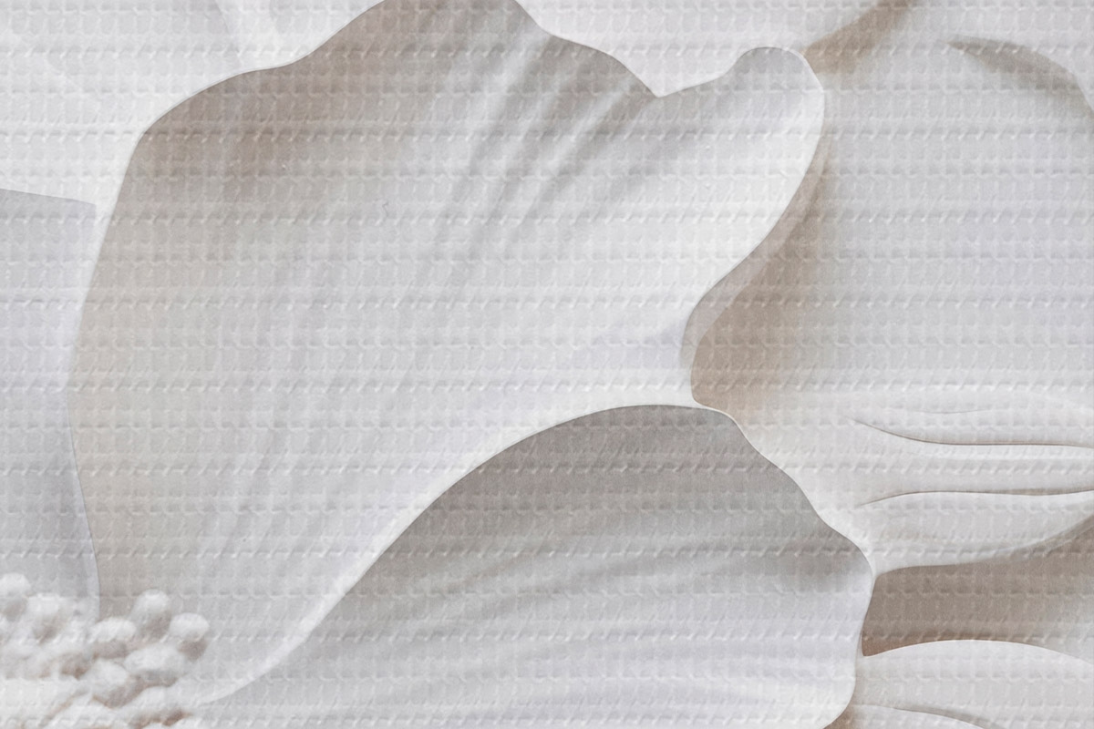 Tableaux rondes Fleurs blanches décoratives minimalistes avec feuilles, imitation relief, fond blanc Nr r45180