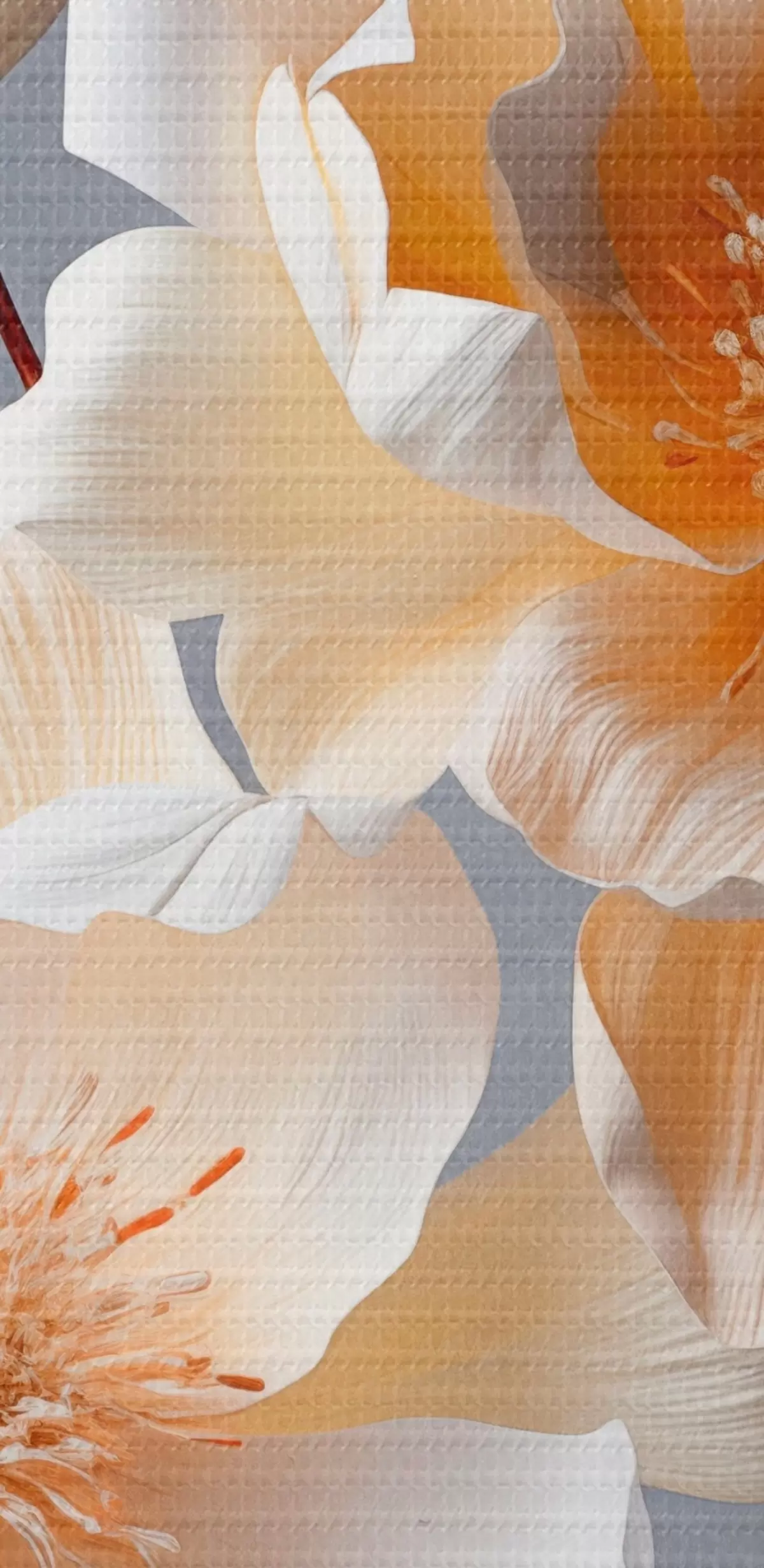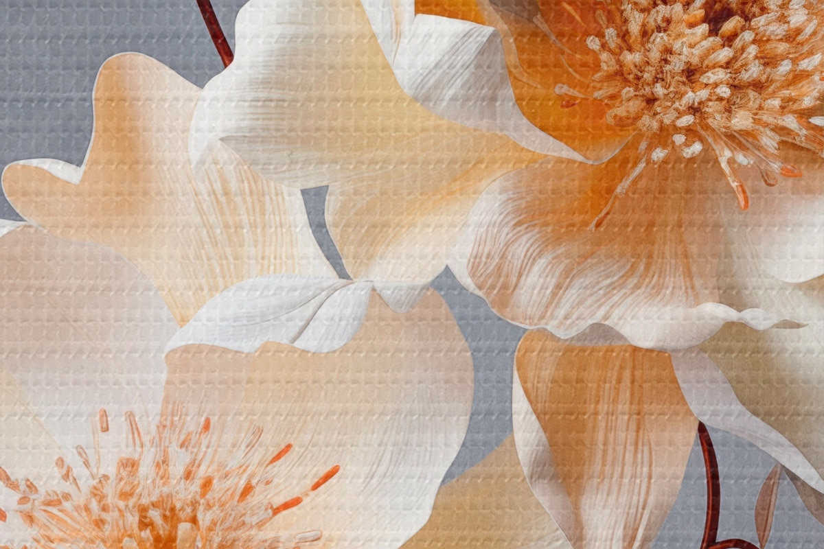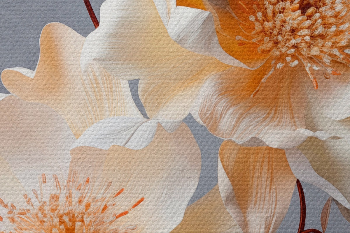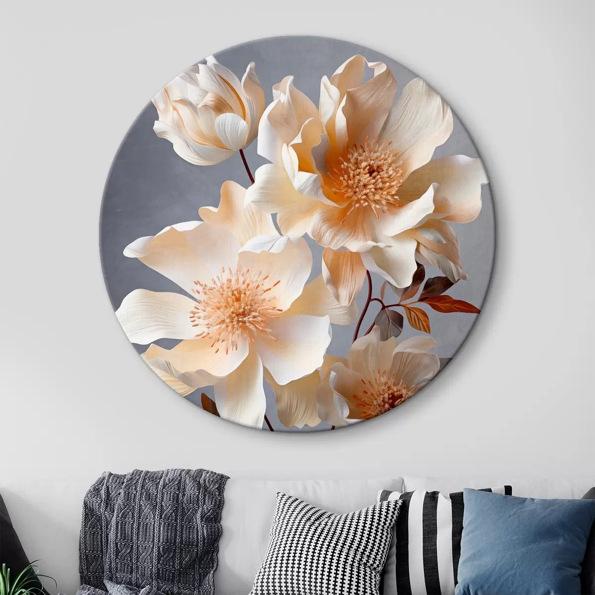 Tableaux rondes Fleurs texturées avec pistils orange et feuilles orange sur fond gris, lumière douce, élégant, détaillé, réaliste Nr r45181