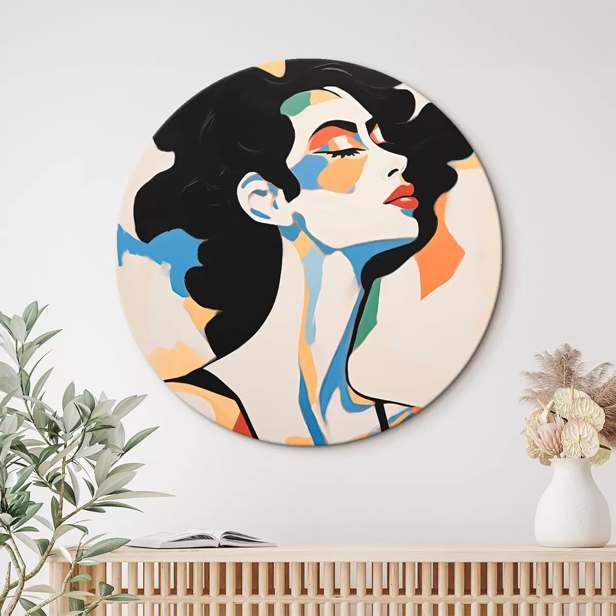 Tableaux rondes Portrait abstrait d'une femme avec imitation de coups de pinceau r45233