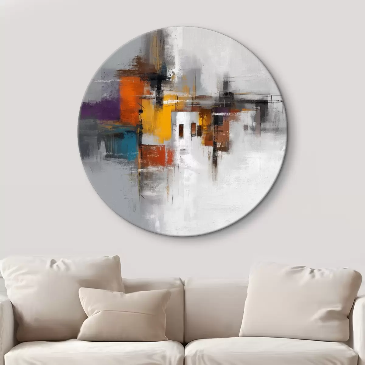 Tableaux rondes Abstraction colorée avec motifs géométriques r45239