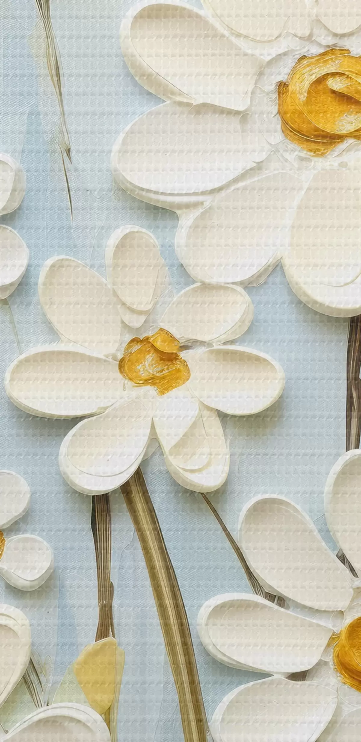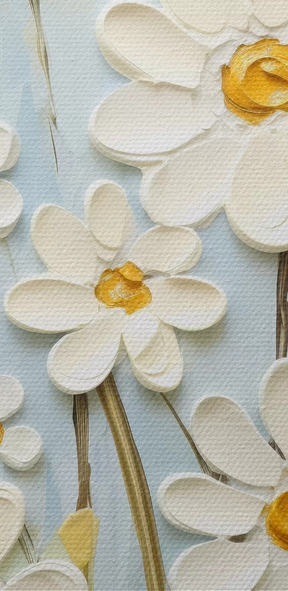 Tableaux rondes Marguerites texturées : l'art de l'empâtement avec des coups de pinceau expressifs r45266