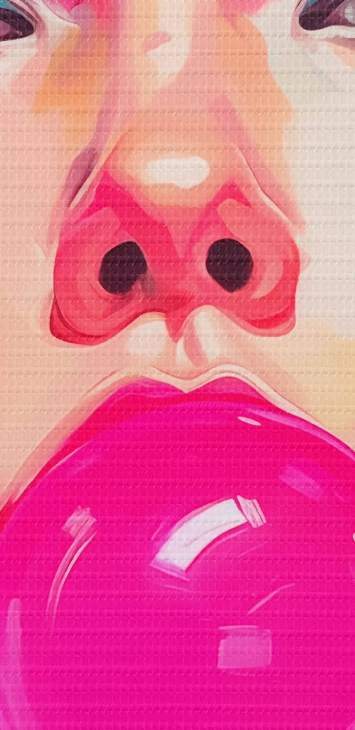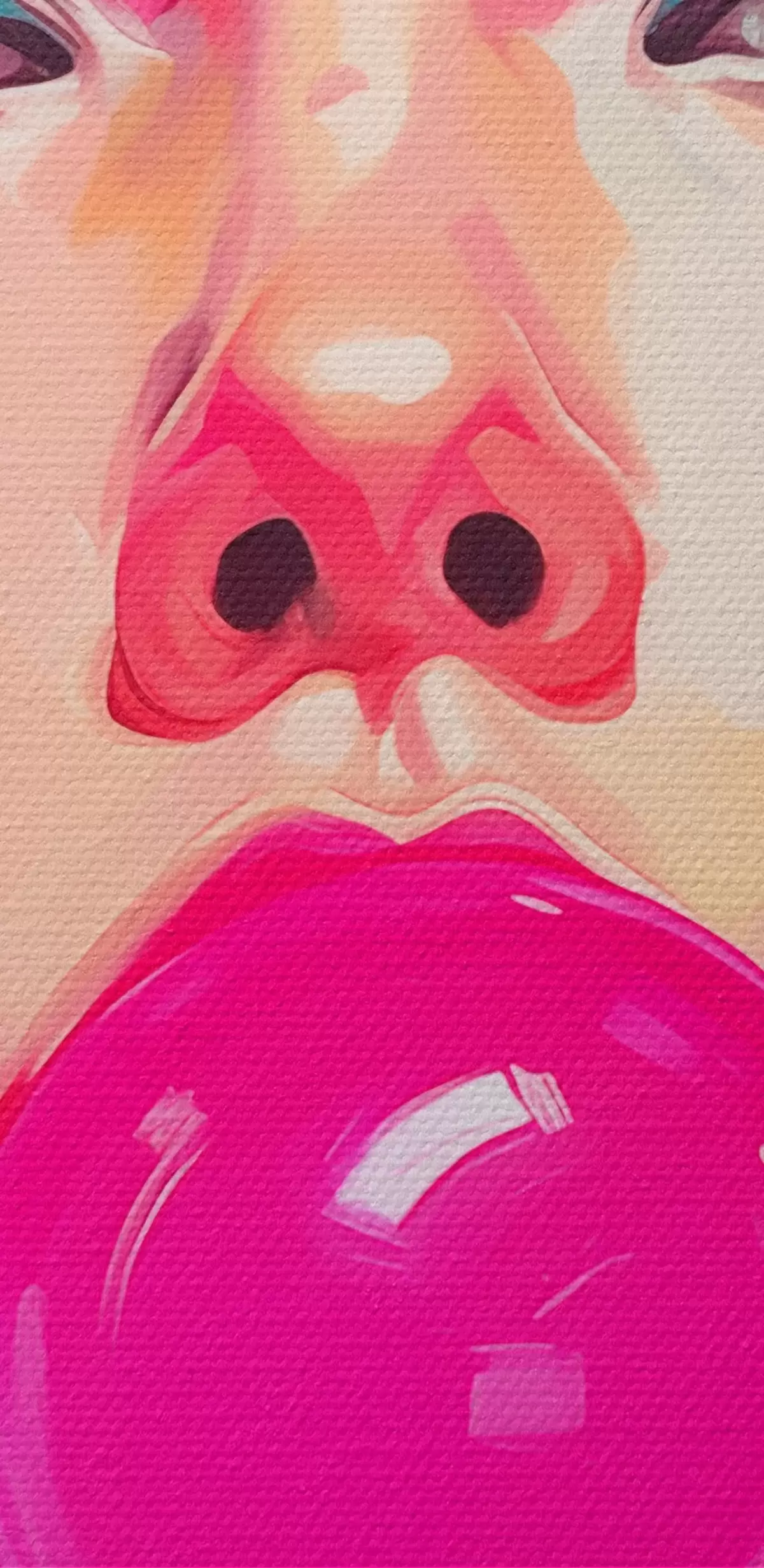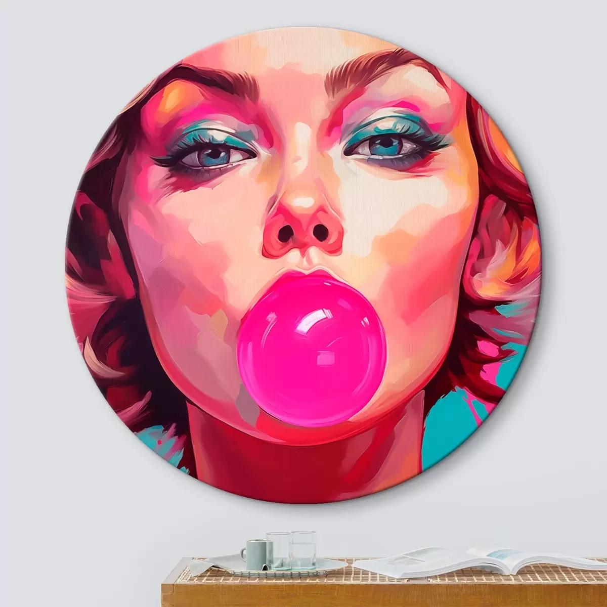 Tableaux rondes Fille avec un chewing-gum rose Nr r45321