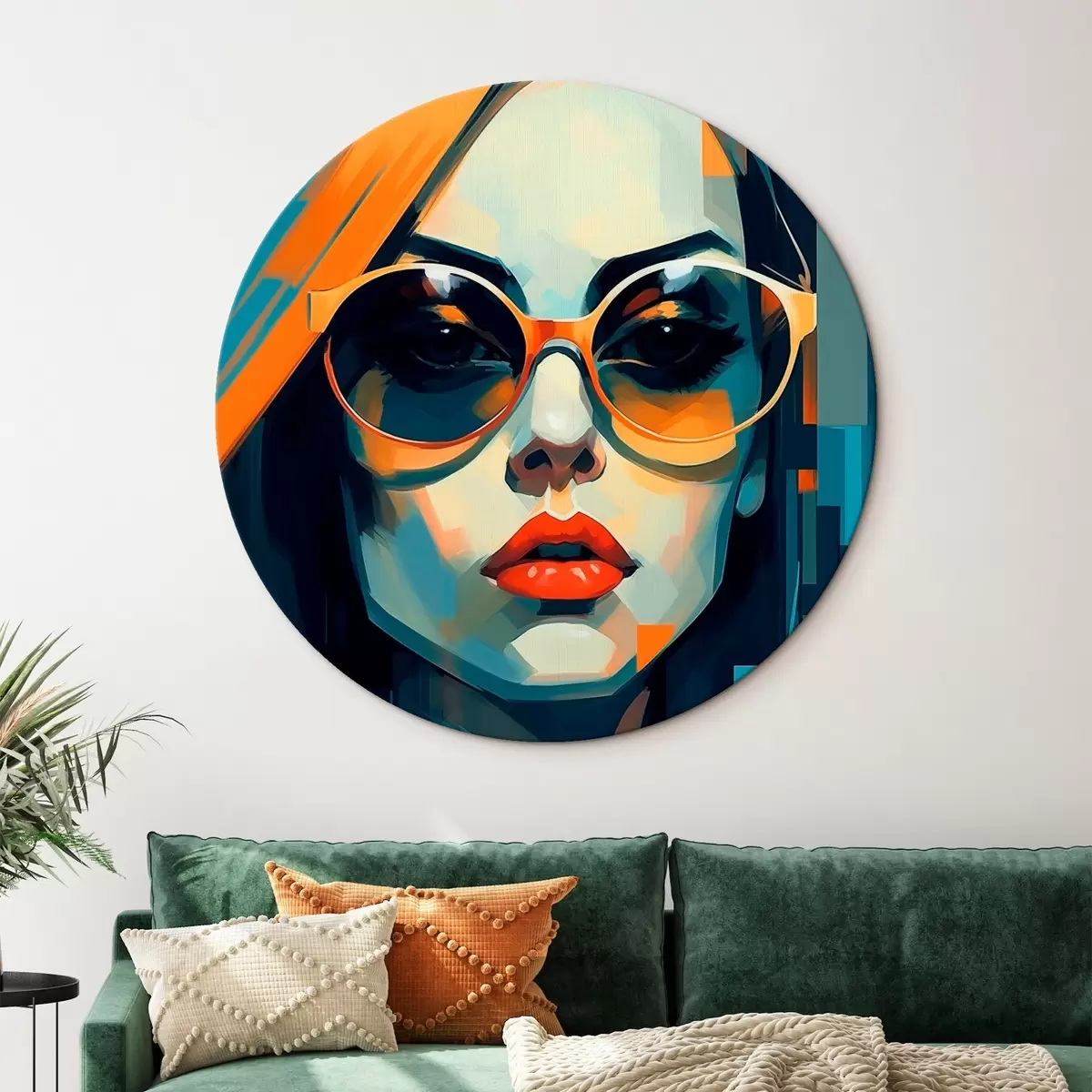Tableaux rondes Femme portant des lunettes de soleil dans un style pop art numérique r45327