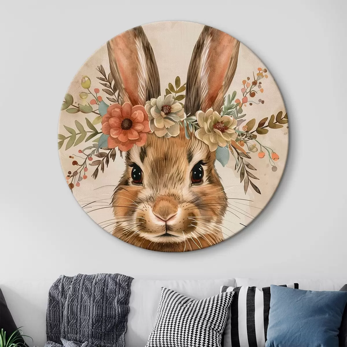 Tableaux rondes Lièvre mignon avec des fleurs en style aquarelle Nr r45332
