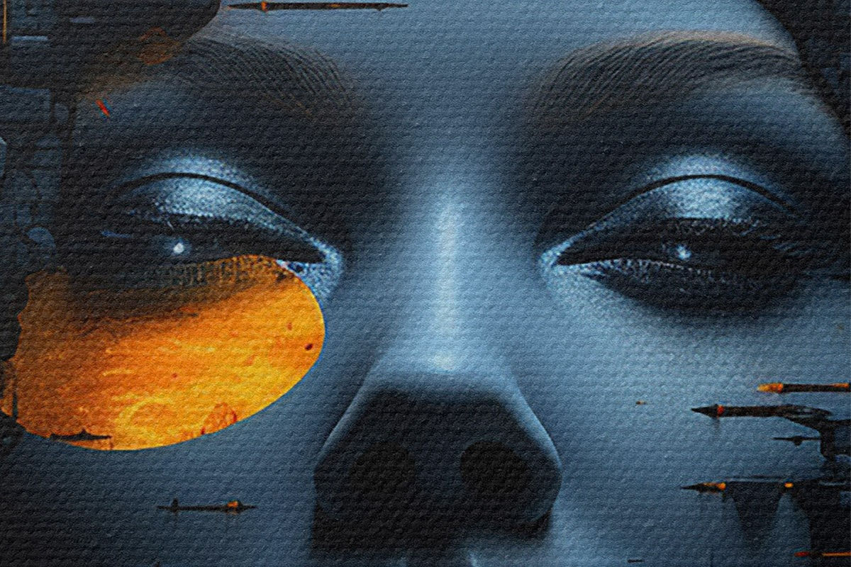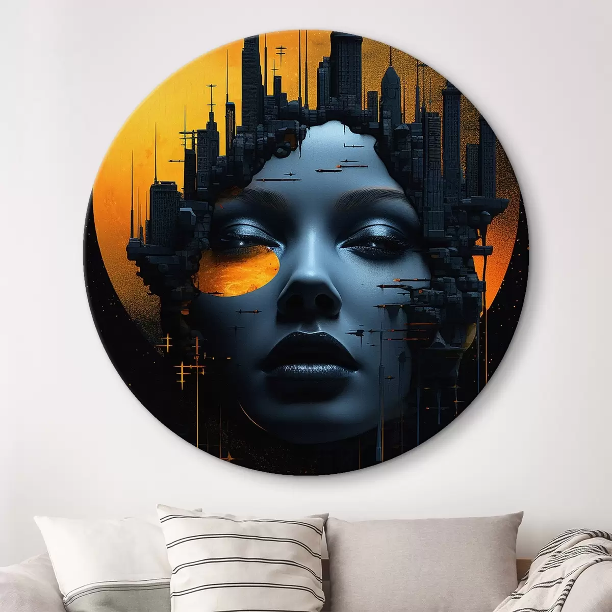 Tableaux rondes Personnes, visage de fille sur fond de ville, abstrait r45341
