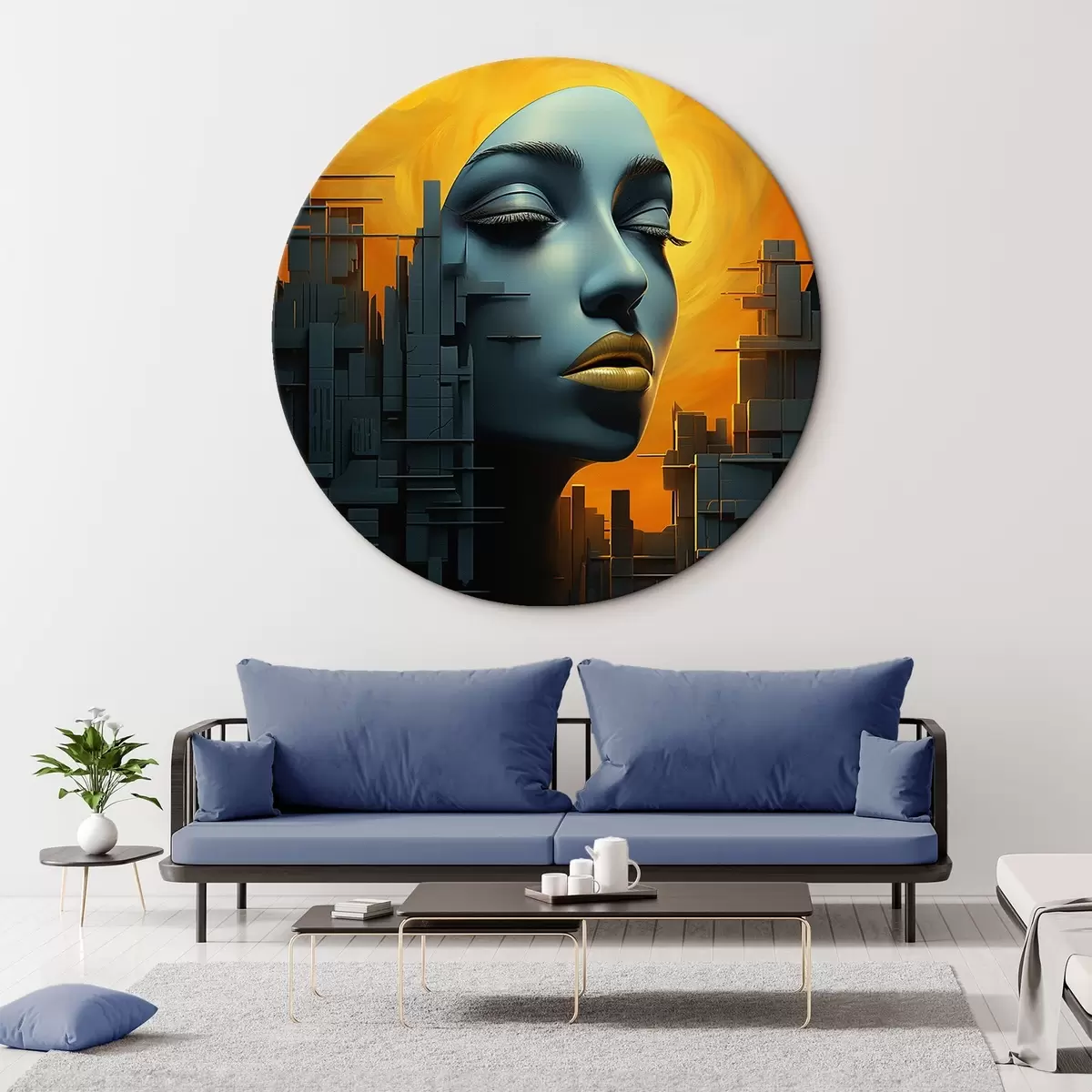 Tableaux rondes Personnes, visage de fille, ville sur fond abstrait r45342