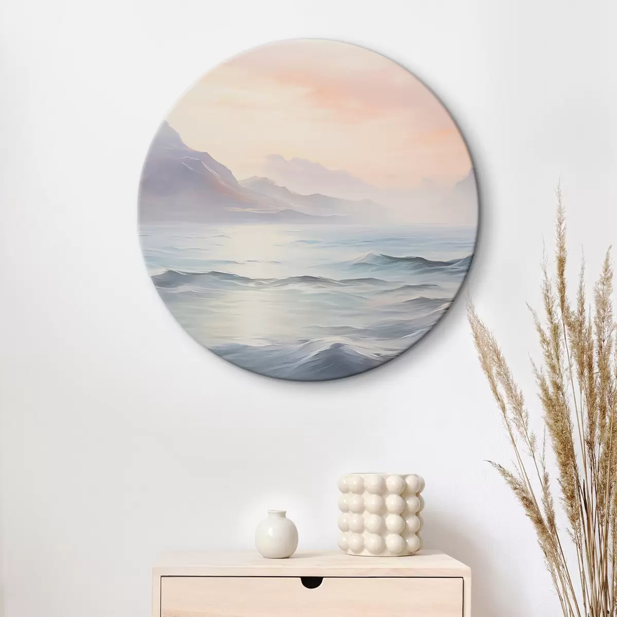 Tableaux rondes Lac près des montagnes imitation de peinture r45344