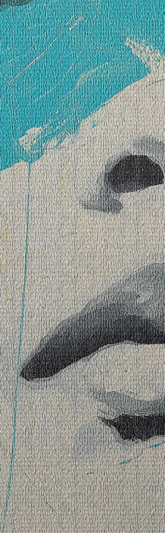 Tableaux rondes Portrait en techniques mixtes avec des fragments de touches de couleur et de textures Nr r45417