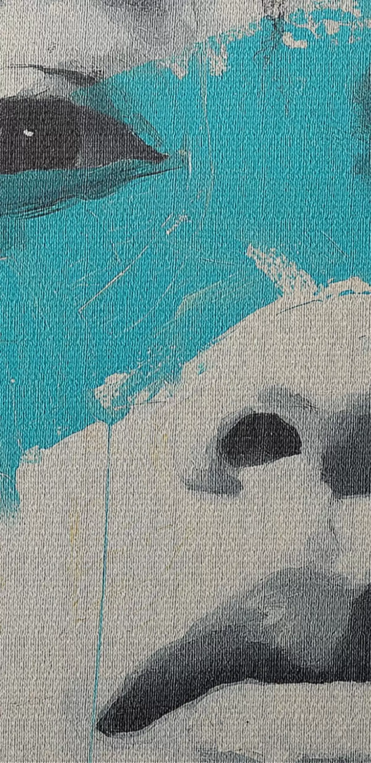 Tableaux rondes Portrait en techniques mixtes avec des fragments de touches de couleur et de textures r45417