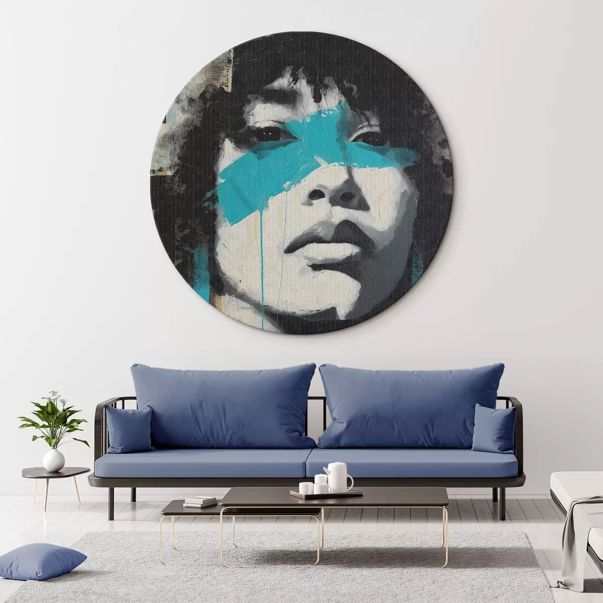 Tableaux rondes Portrait en techniques mixtes avec des fragments de touches de couleur et de textures r45417