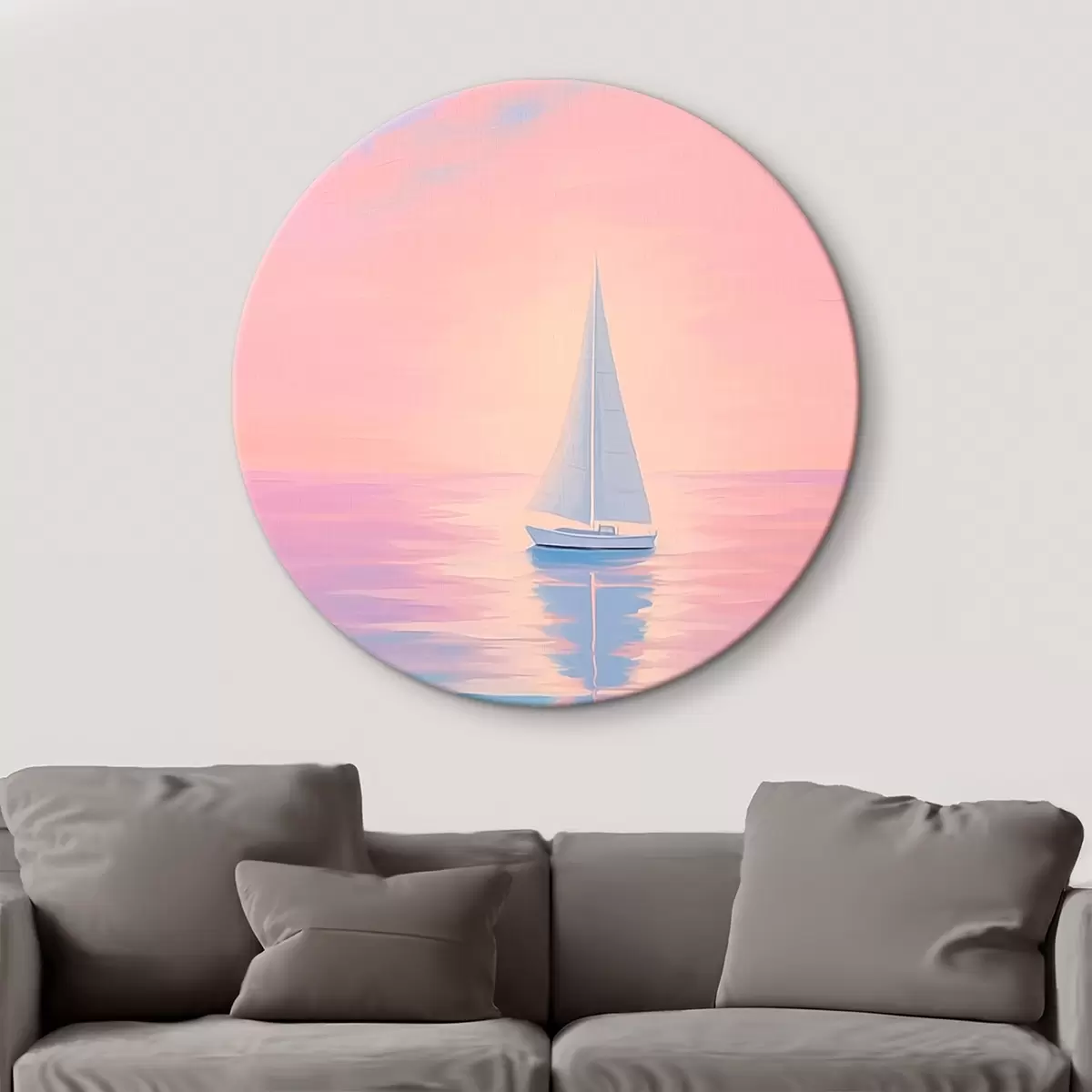 Tableaux rondes Voilier en mer au coucher du soleil Nr r45428