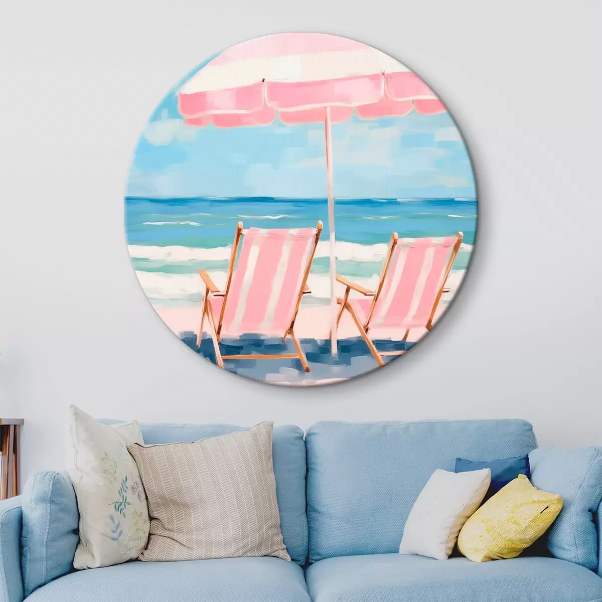 Tableaux rondes Parasol et chaises longues sur la côte Nr r45442