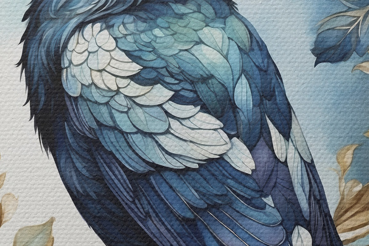 Tableaux rondes Oiseau bleu sur une branche avec des feuilles de style aquarelle r45483