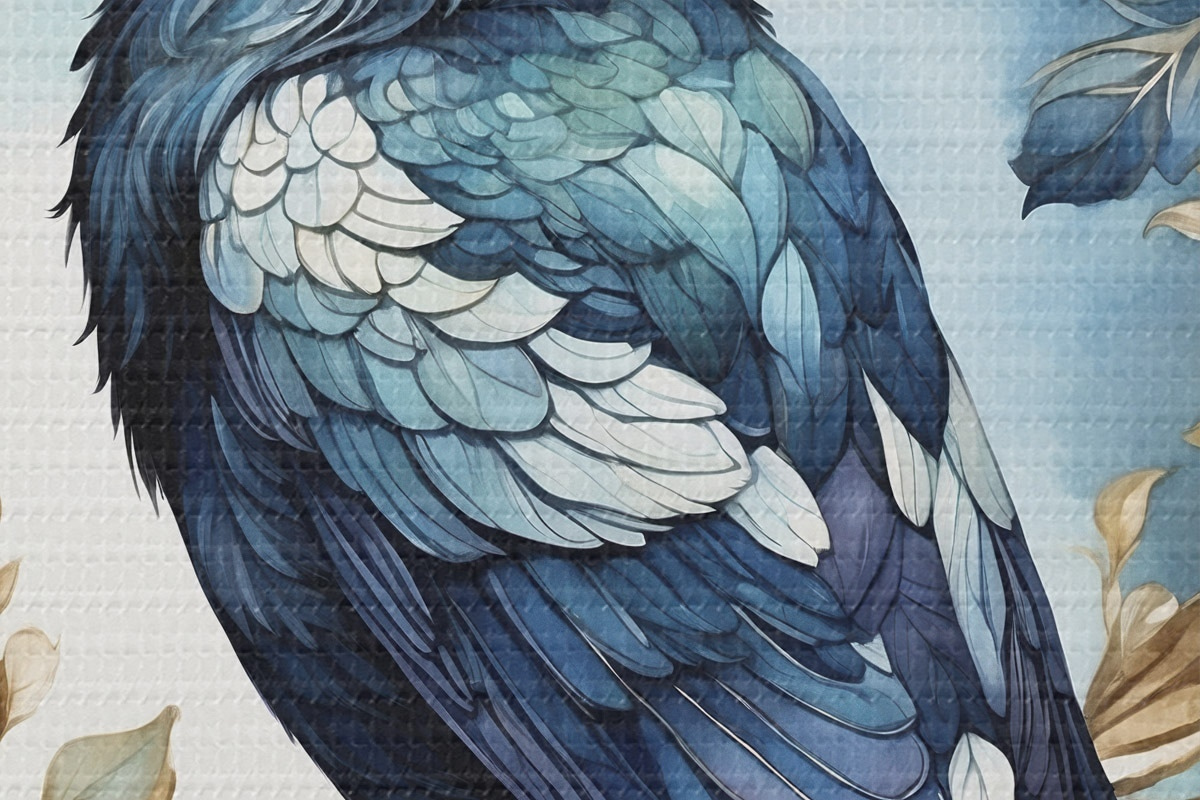 Tableaux rondes Oiseau bleu sur une branche avec des feuilles de style aquarelle Nr r45483
