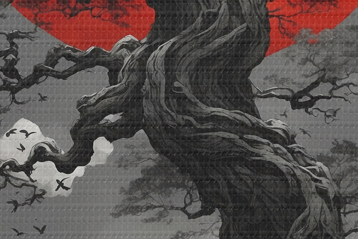 Tableaux rondes Arbre et soleil rouge Nr r45485