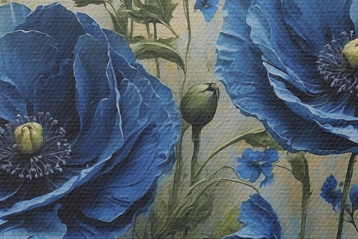 Tableaux rondes Grands coquelicots bleus avec bourgeons sur fond clair Nr r45488