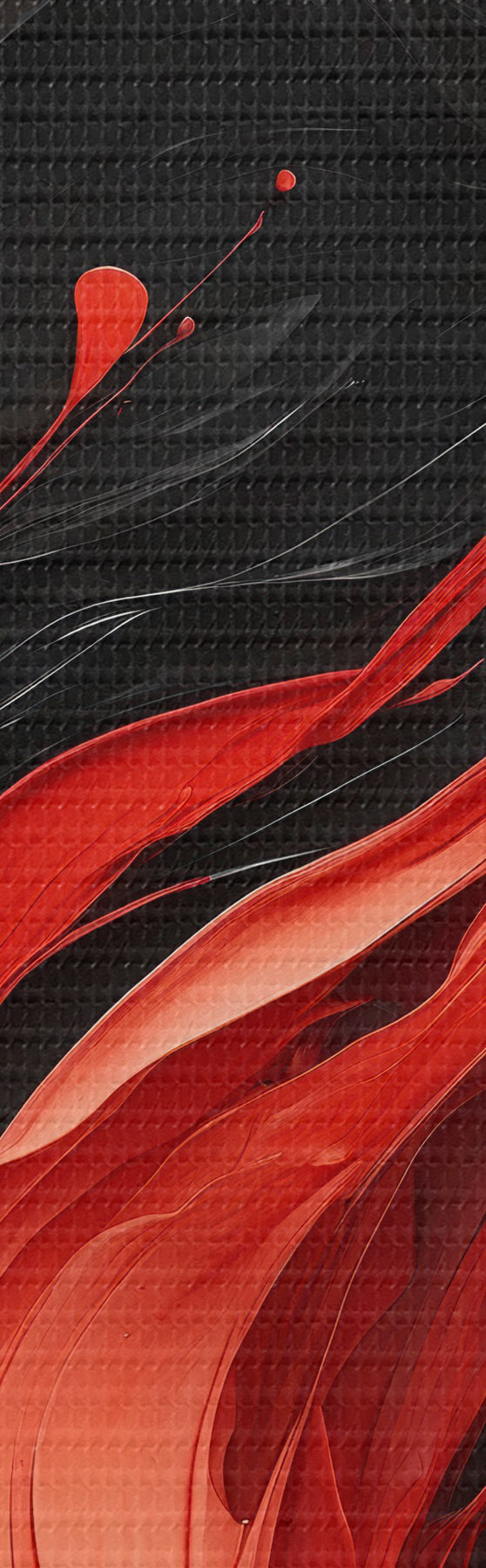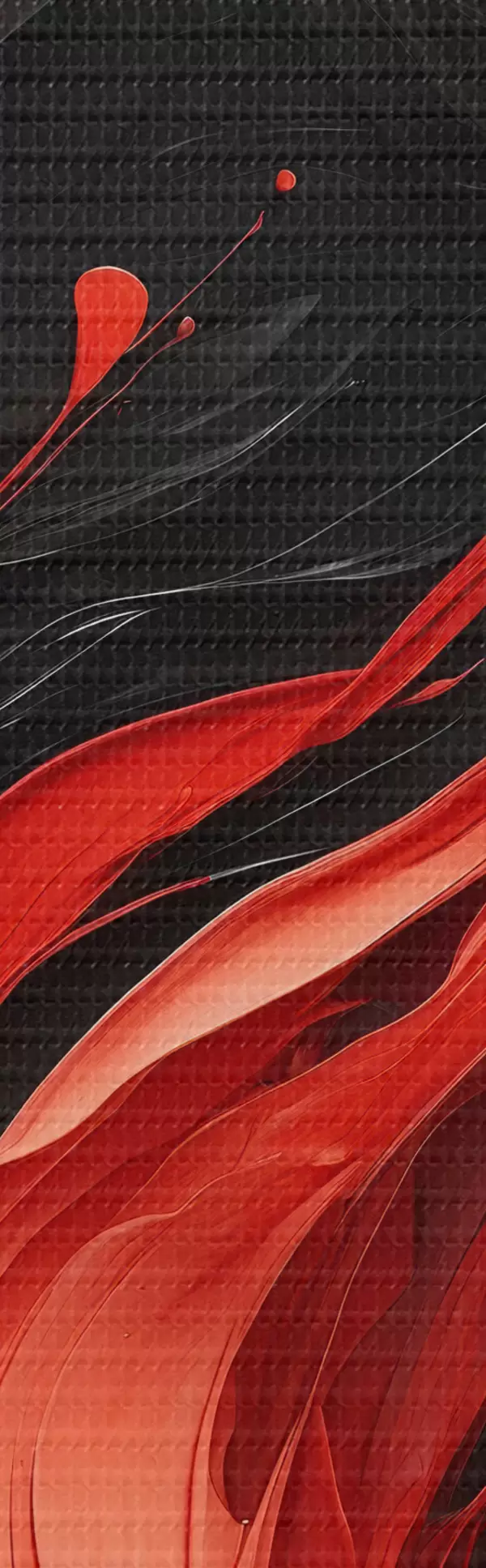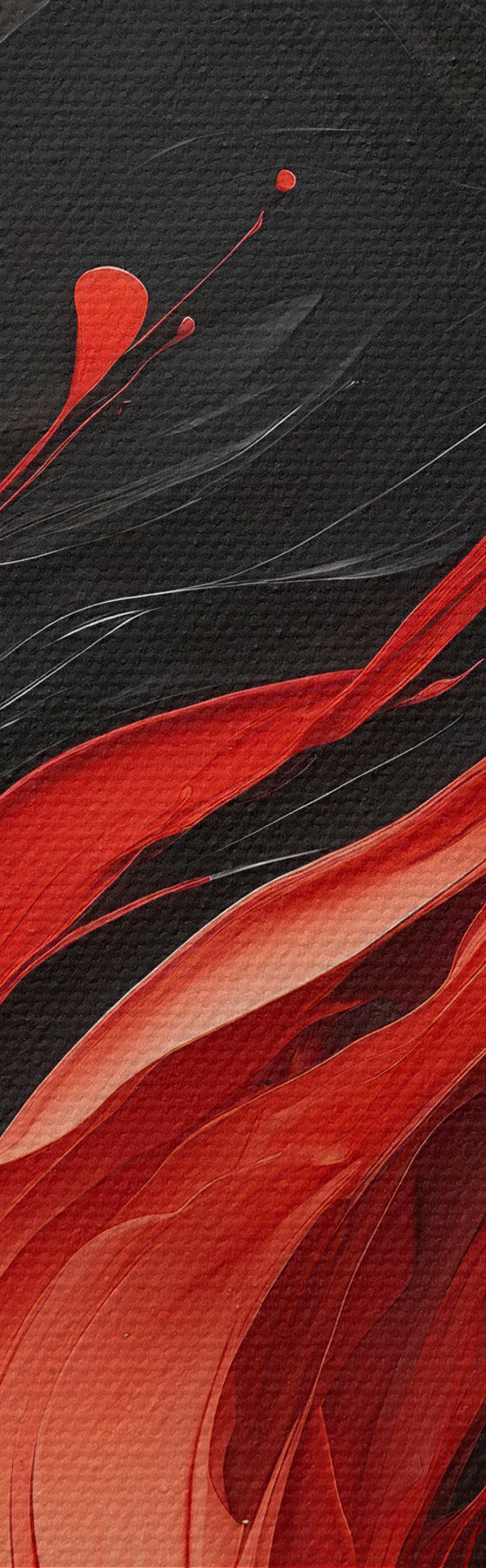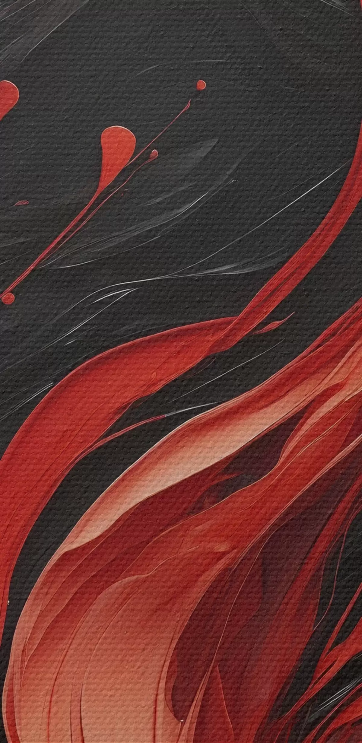 Tableaux rondes Abstrait avec coups de pinceau rouges sur fond noir r45490