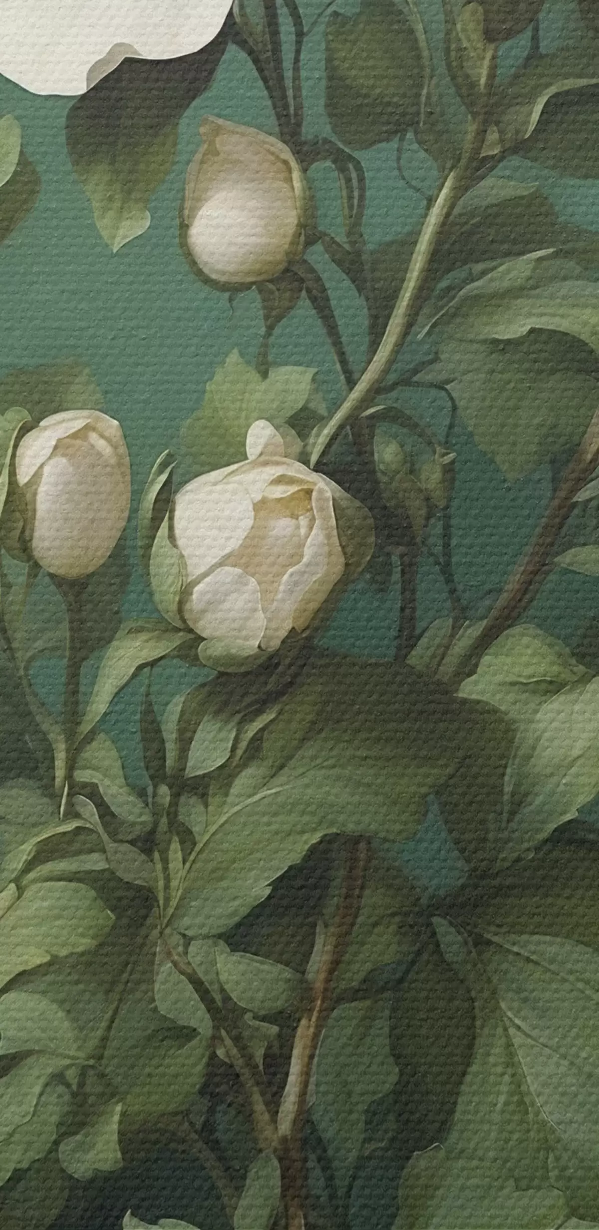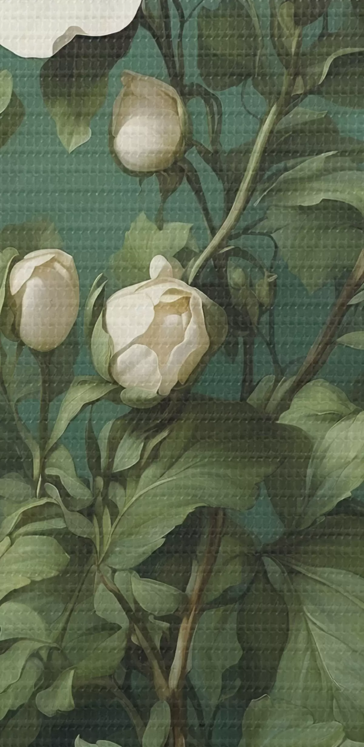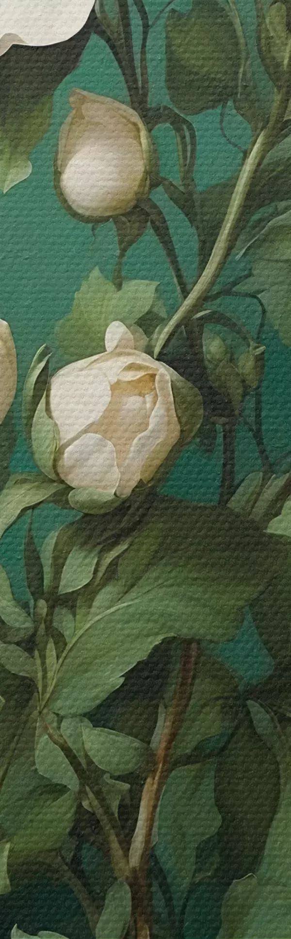 Tableaux rondes Fleurs de pivoine crème sur fond vert r45491