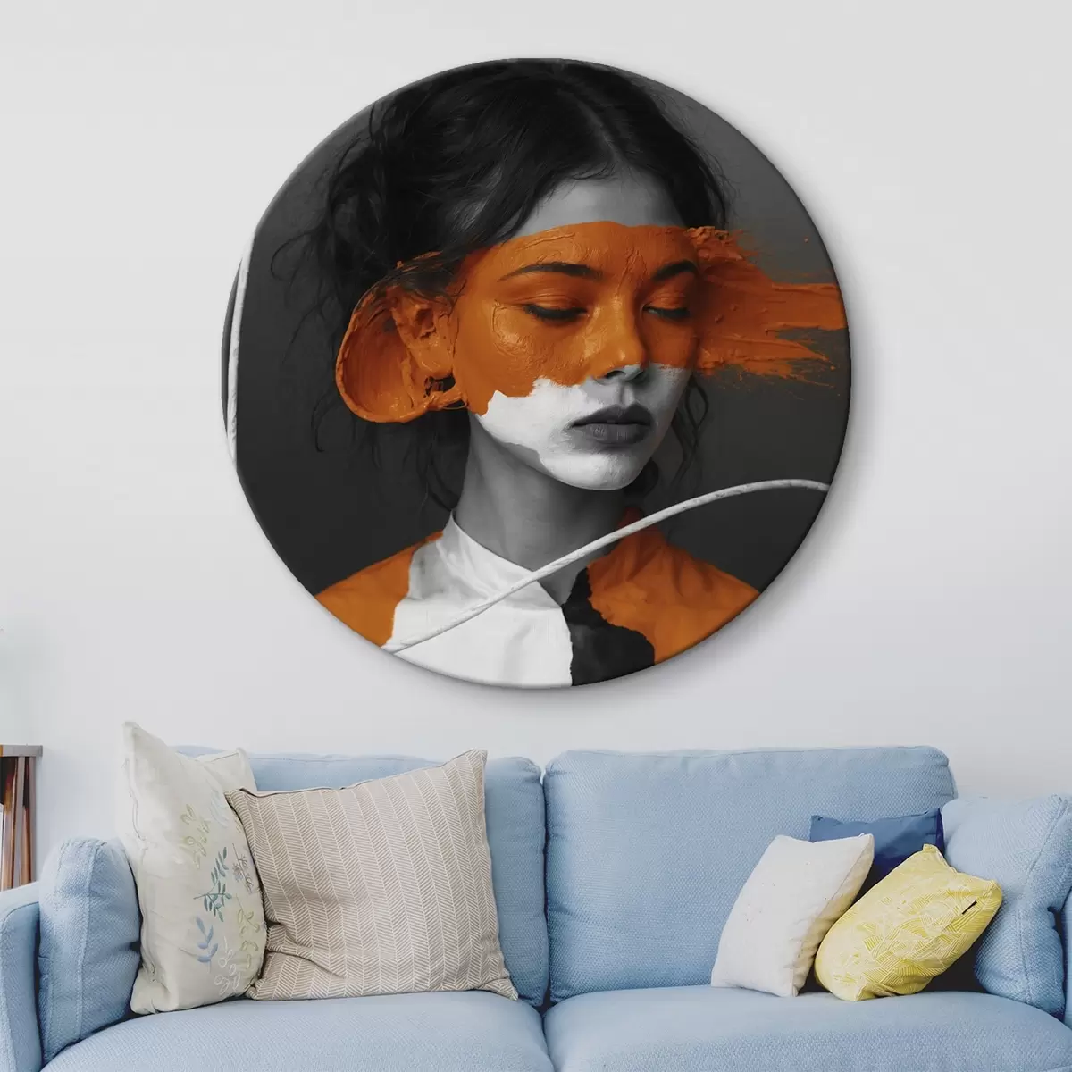 Tableaux rondes Portrait d'une fille avec une image abstraite orange Nr r45495
