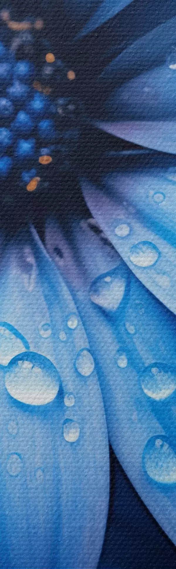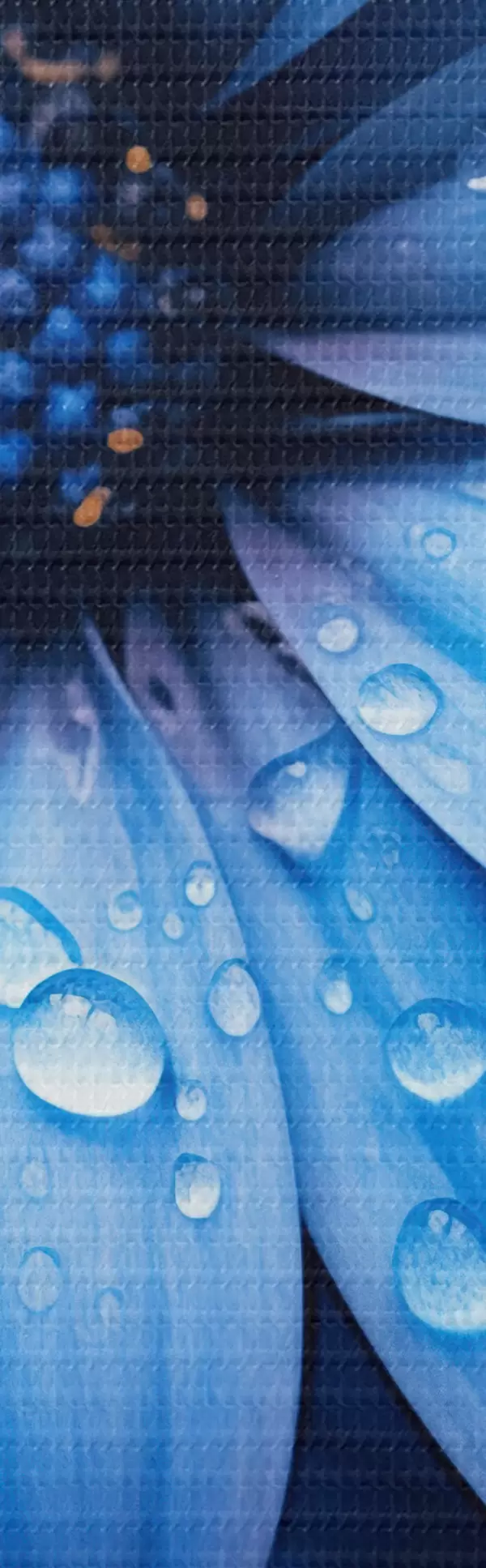 Tableaux rondes Fleur bleue avec des gouttes d'eau sur ses pétales Nr r45499