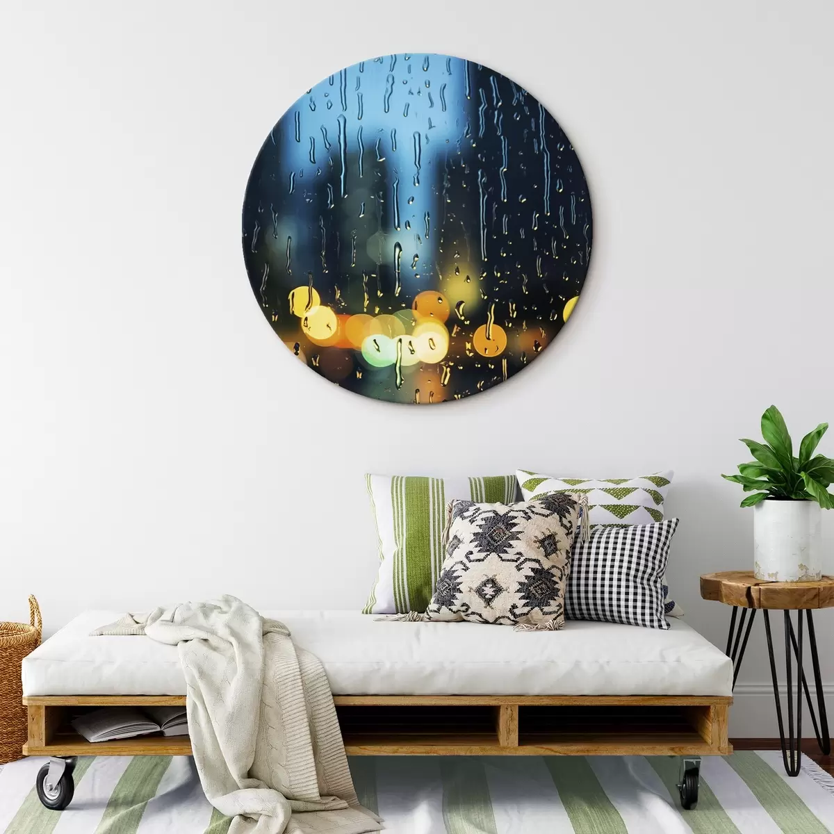 Tableaux rondes Gouttes de pluie sur la fenêtre avec veilleuse Nr r45500