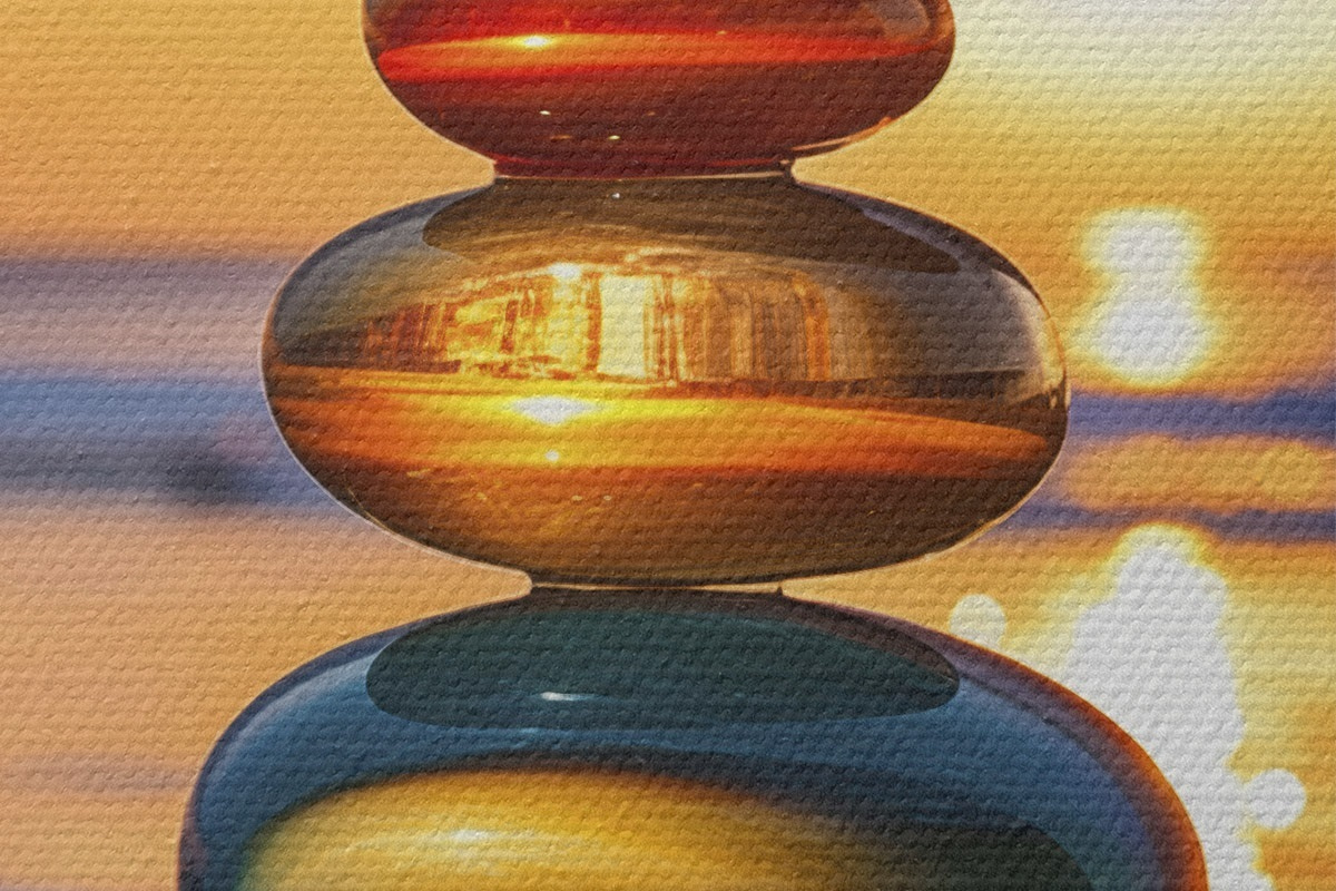 Tableaux rondes Pierres empilées sur fond de coucher de soleil r45520