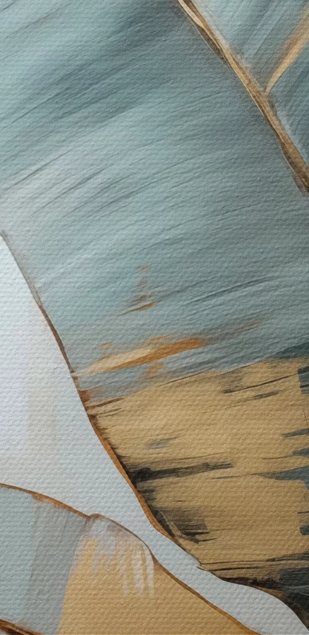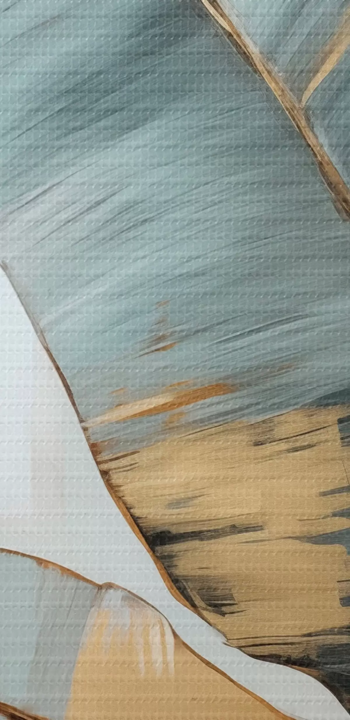 Tableaux rondes Un ensemble de feuilles de bananier bleues, grises et jaunes avec des coups de pinceau visibles, sur un fond blanc abstrait Nr r45551