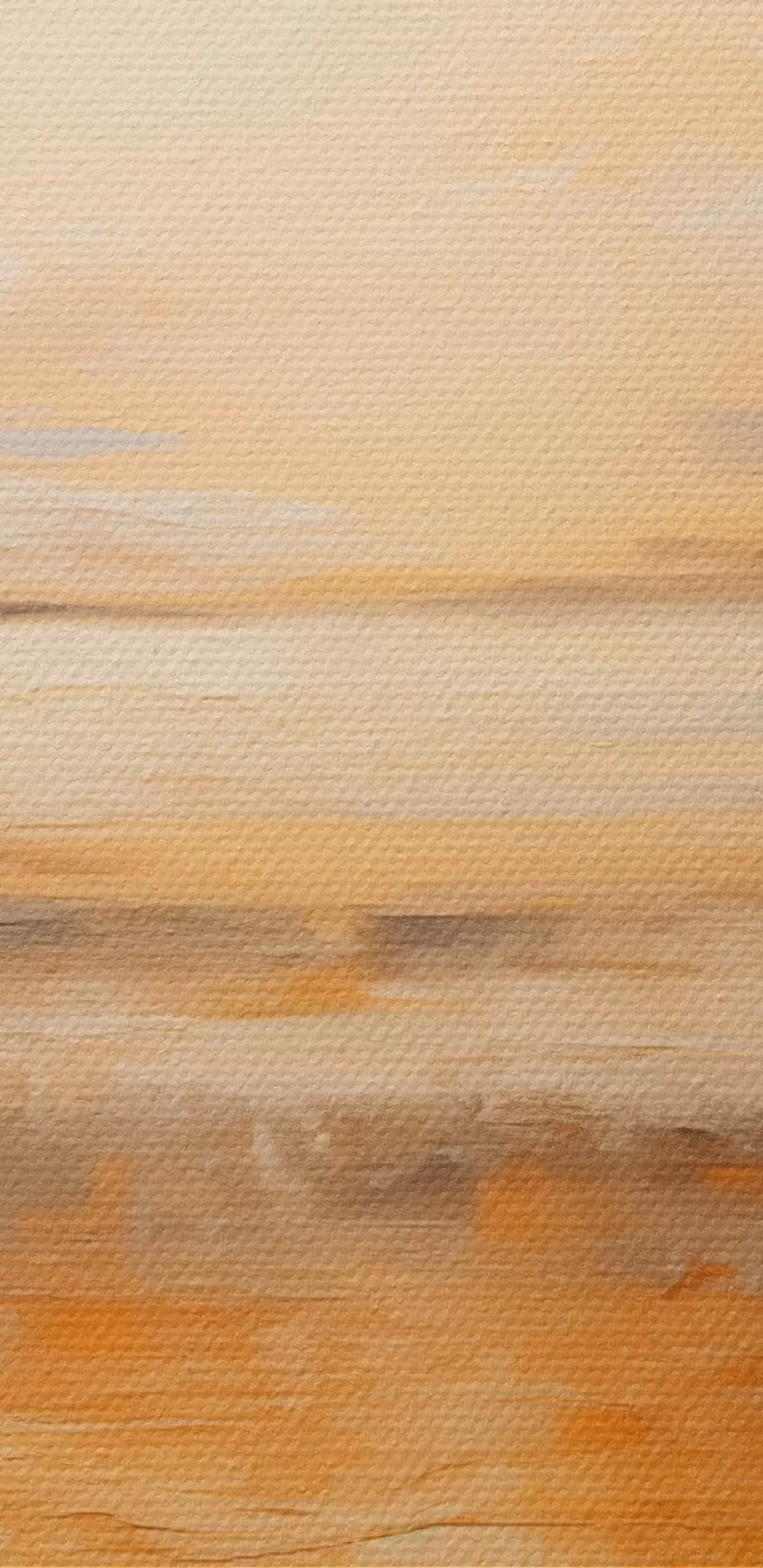 Tableaux rondes Peinture abstraite d'un paysage de plage avec un océan calme, du sable orange et un ciel nuageux avec du soleil Nr r45567