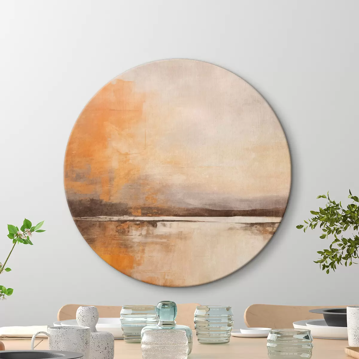 Tableaux rondes Paysage abstrait texturé dans les tons orange, marron et beige Nr r45568