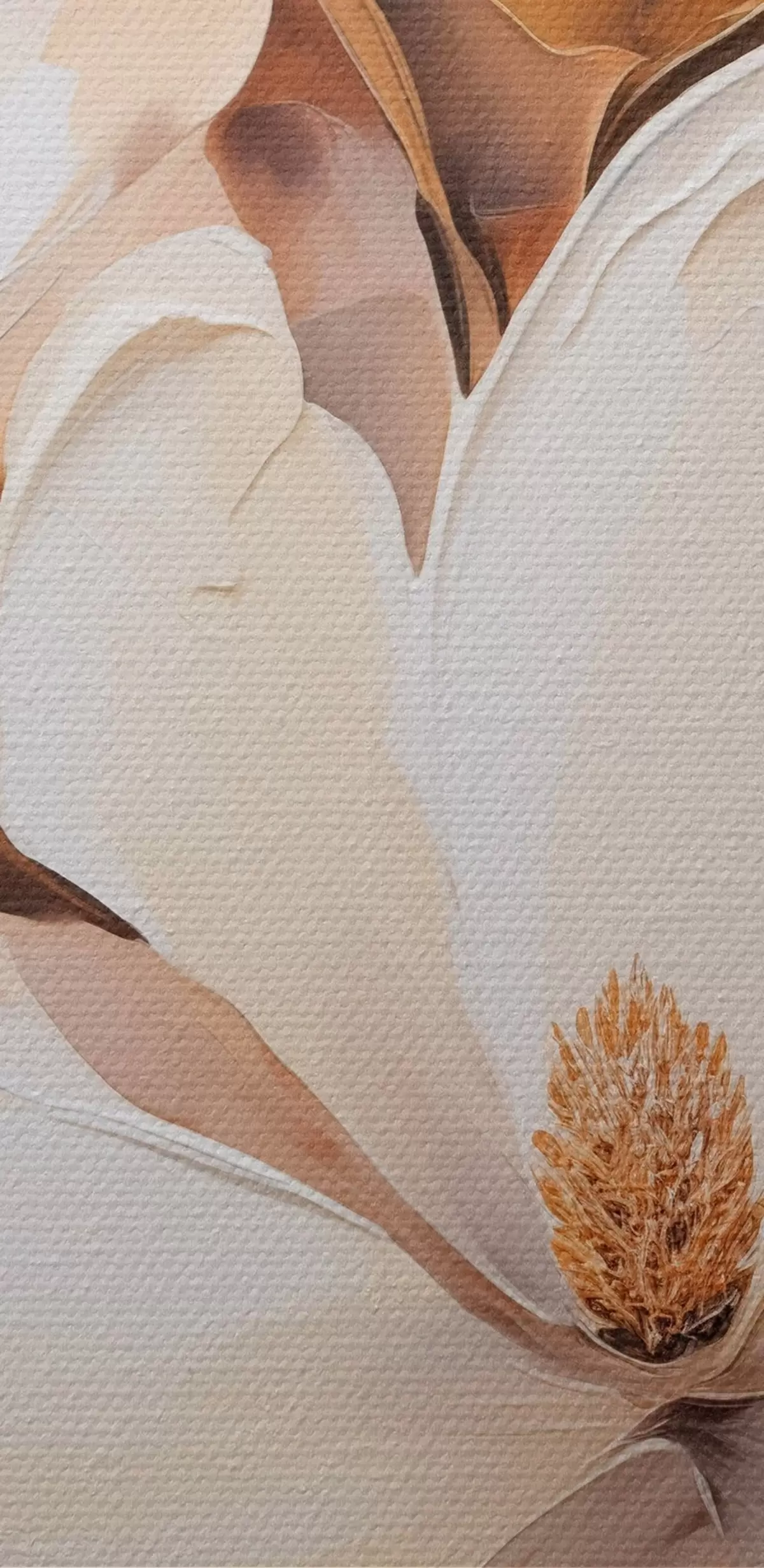 Tableaux rondes Fleurs de magnolia blanches sur un fond doux et flou de tons beiges et bruns, style peinture Nr r45572