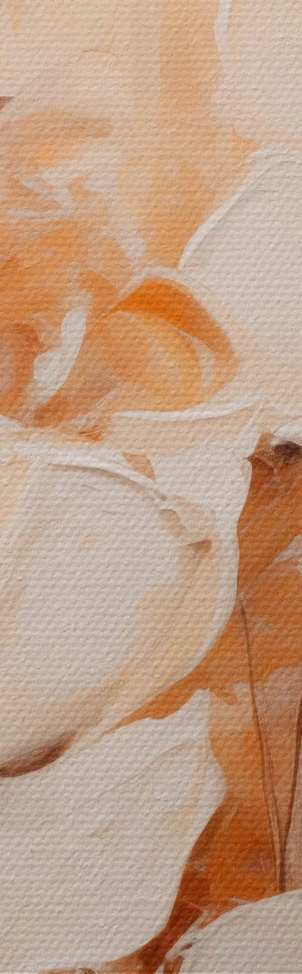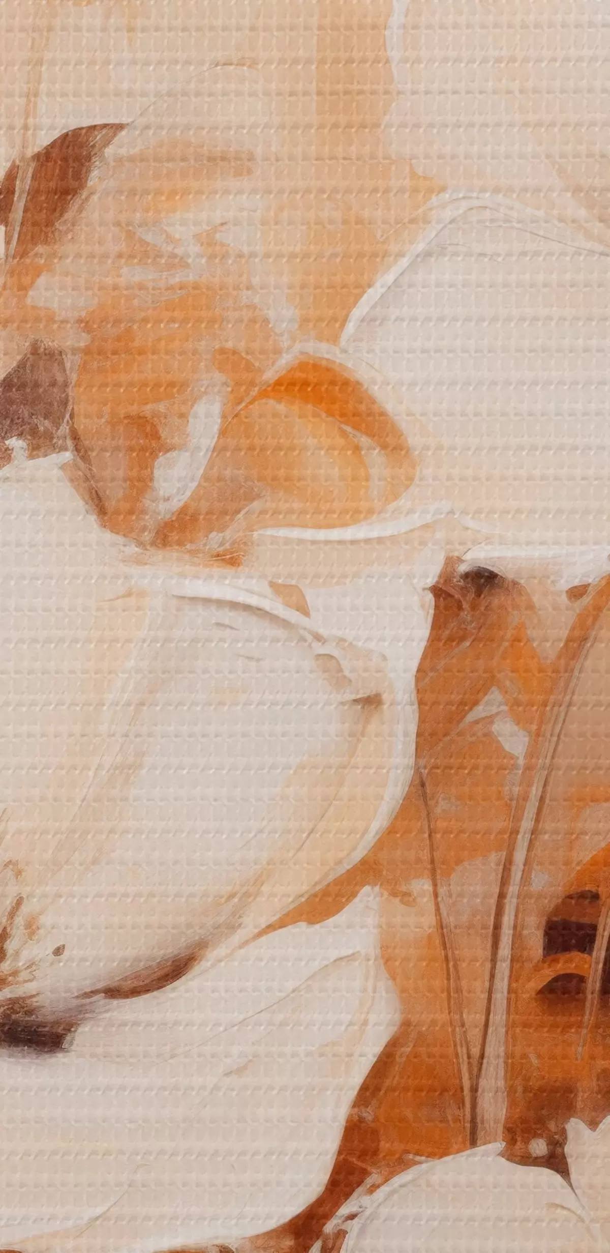 Tableaux rondes Fleurs blanches avec feuilles orange, coups de pinceau délicats, palette de couleurs chaudes, composition élégante r45573